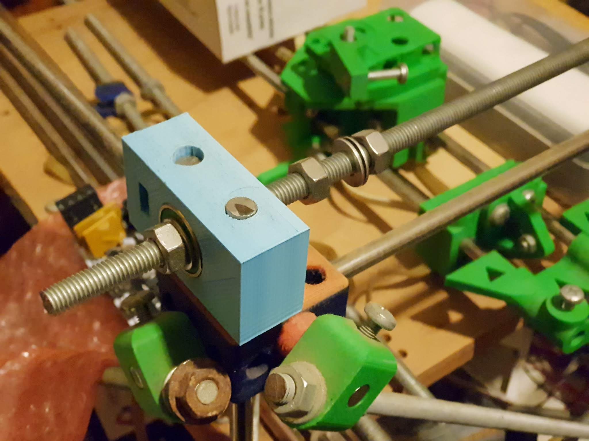 The 608 bearing holders are tentatively being replaced at a later date once I can get proper colour matching done with Colorfabb new offering of colour matching