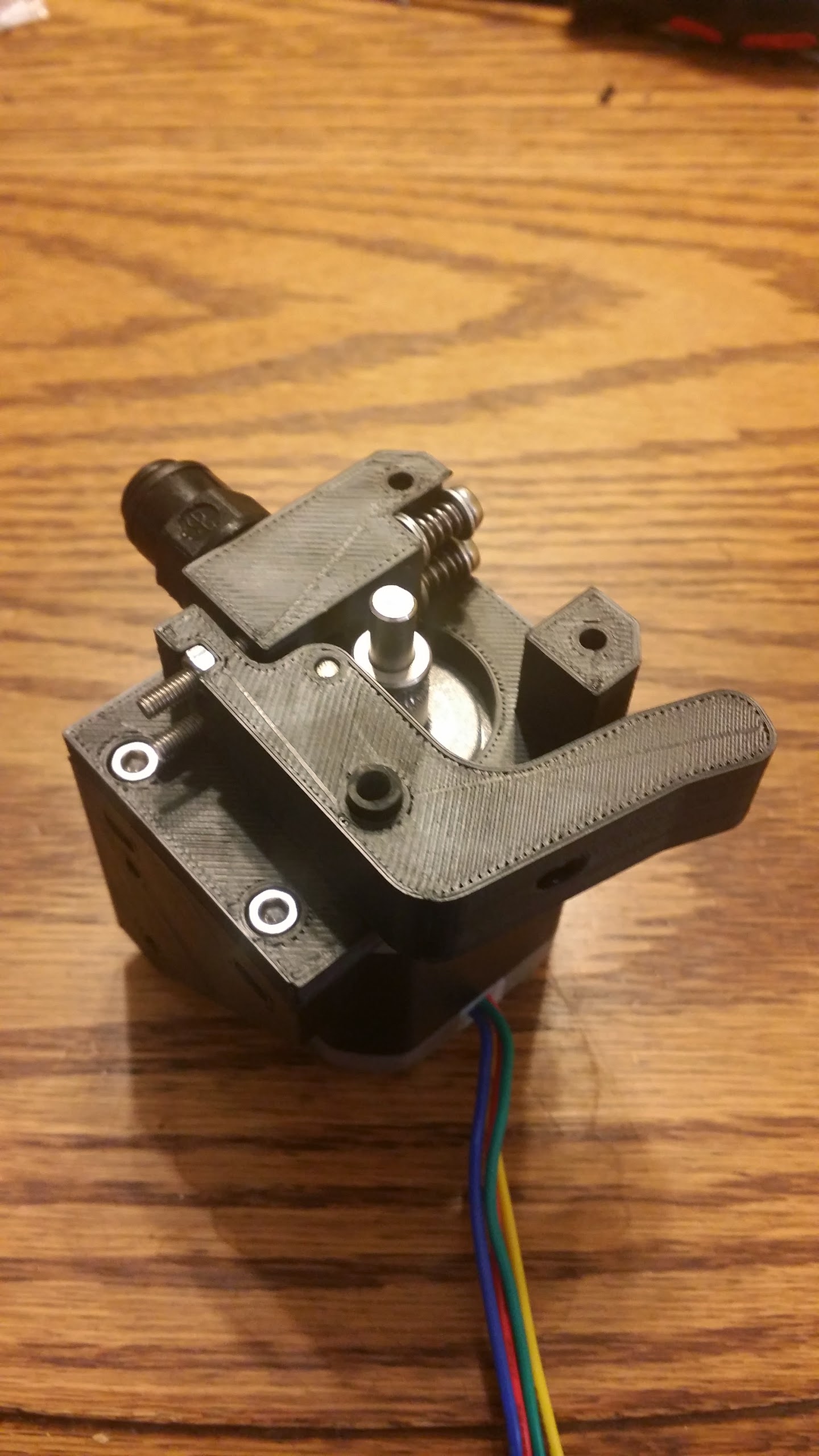 @Shauki Thats very similar to the design I’m working on now but the small diameter bearings seam to be striping out the filament. I made a makeshift test extruder with the larger bearing and it works a lot better, so I’ll be redesigning my extruder to use a larger bearing and then so how it holds up.