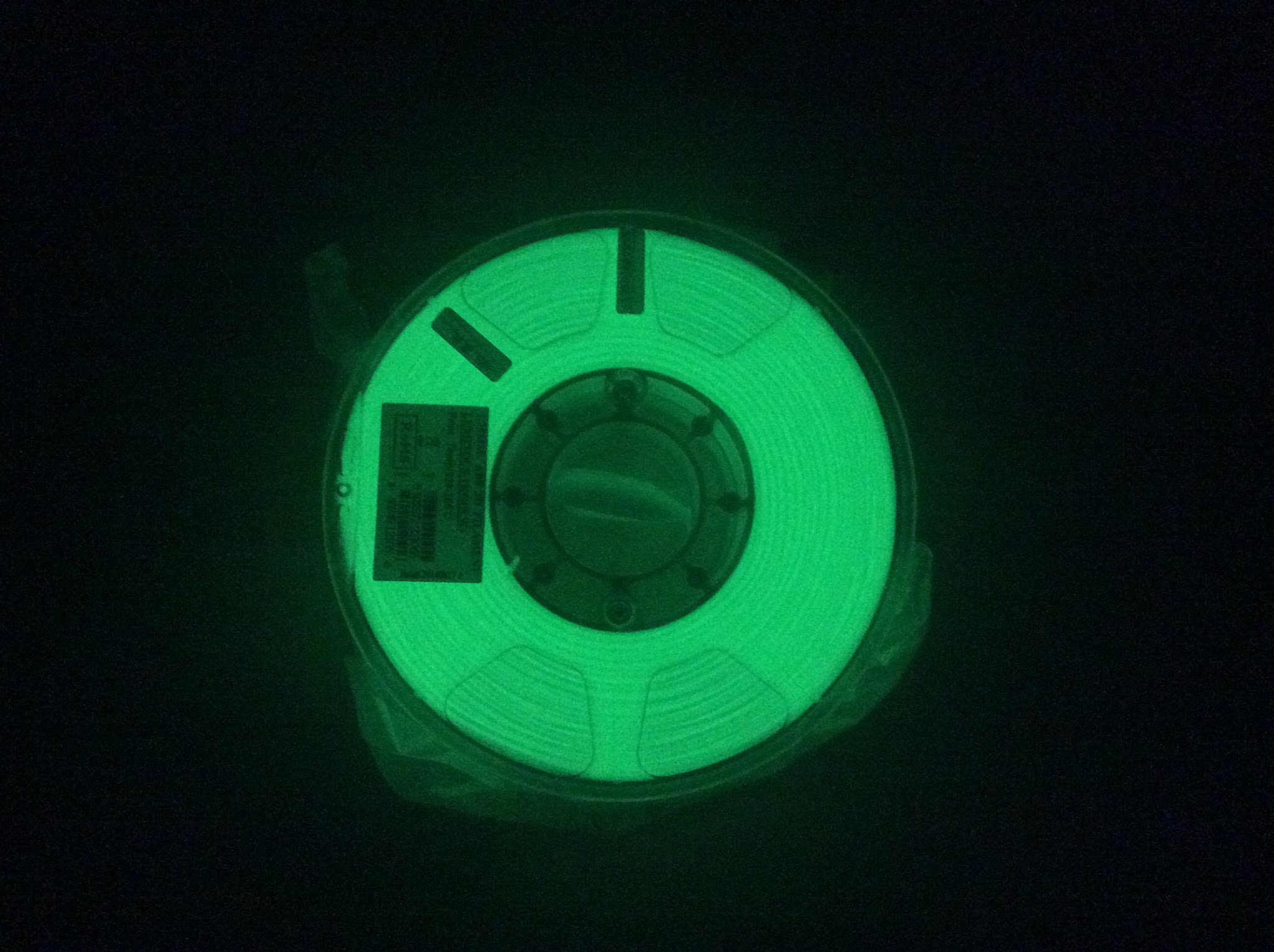 This filament also fluorescence so it will light up bright green when you shine UV/blacklight on it. You can also use/combine different fluor colors.