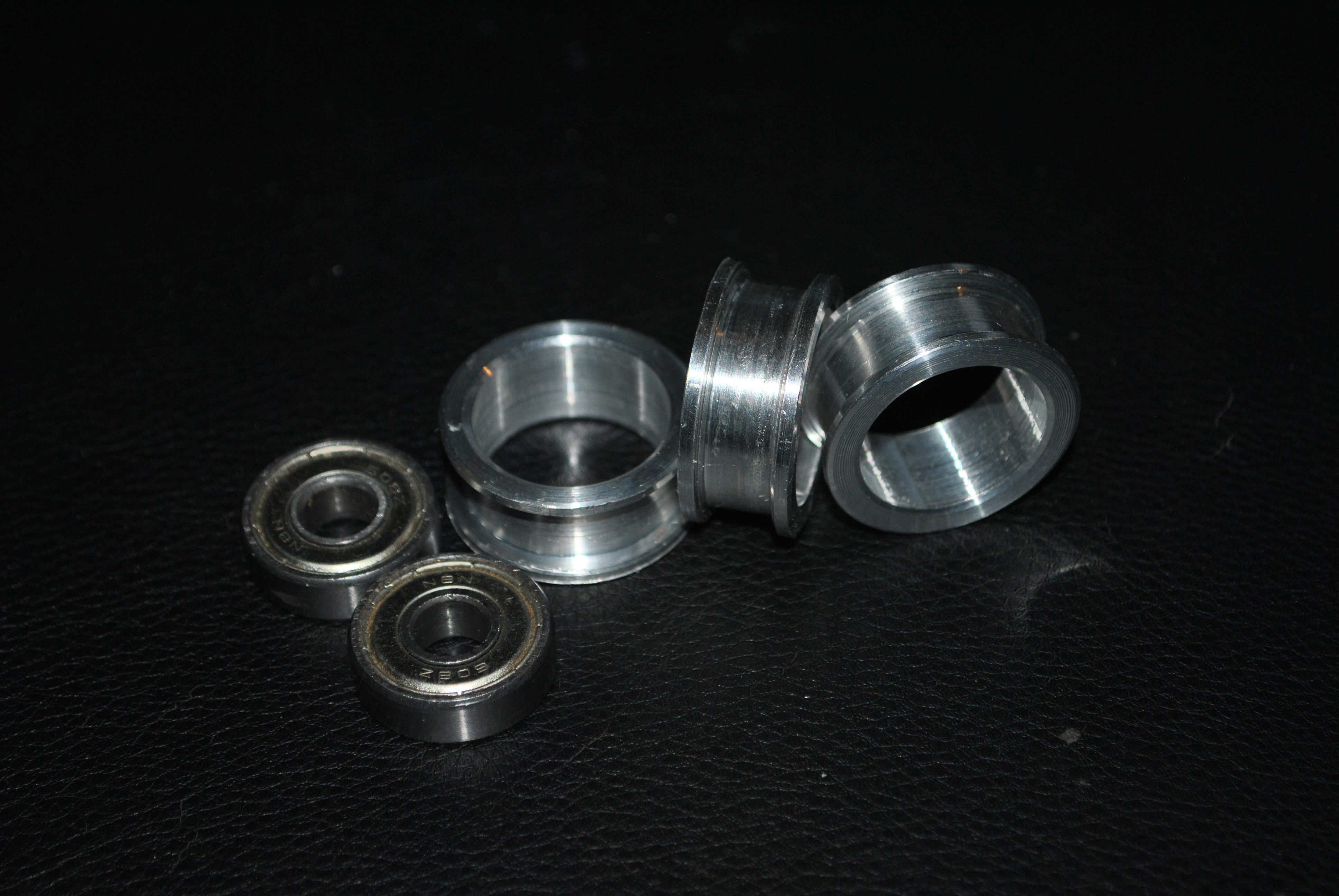 I modified the openbuilds pulley design for 624 and 623 bearings, the 624 size I could print on FDM, the 623 I had done on an SLA.