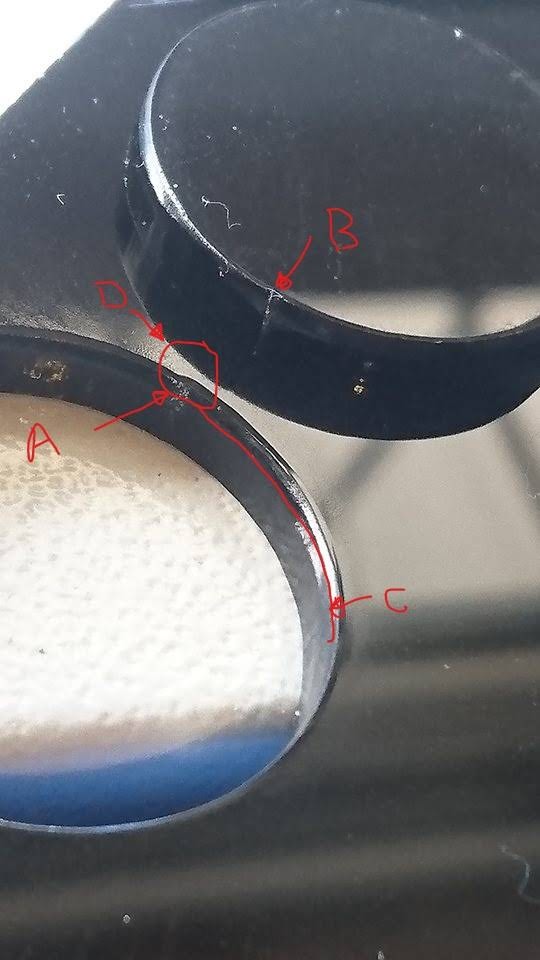 D: seems to be slightly offset, overlapped etc. C: seems to have a chamfer on the edge for some but not all the circumference.