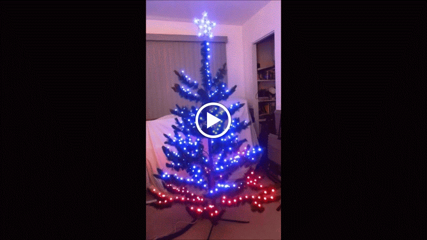 I am using a 100W 5V PSU powering directly an Arduino Mega and all 332 WS2811 pixel modules with diffused 8mm RGB LEDS. The branches (34 in total) have anywhere from 4 to 13 RGB LEDS and are connected to the trunk by small XH2.54 4-pin connectors making for easy assembly/disassembly and storage.