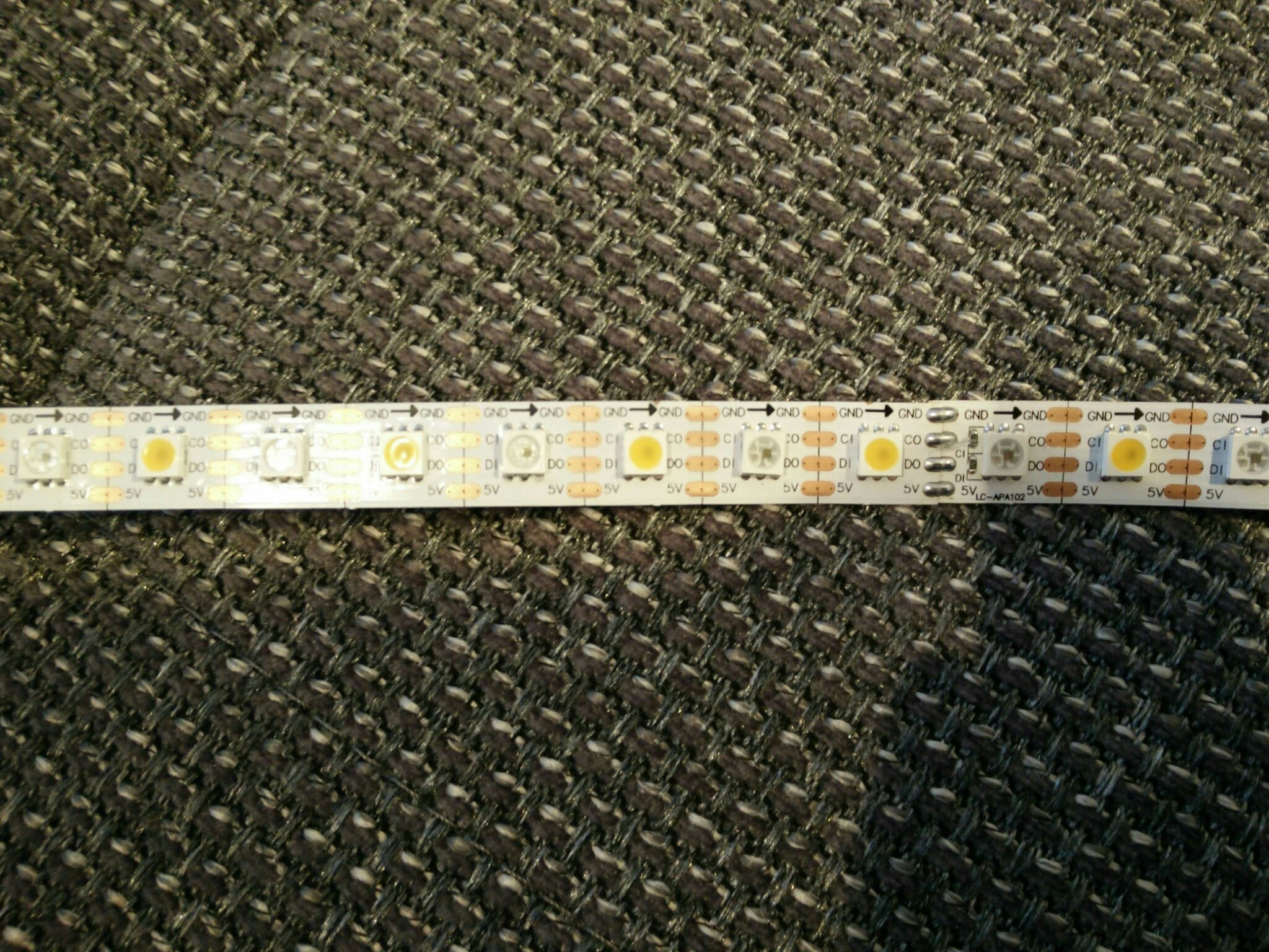 Hello here is a picture of my rgbw apa 102 led stripe. Any suggestions how I can efficiently control the rgb with the example programs and the white separately? Thanks