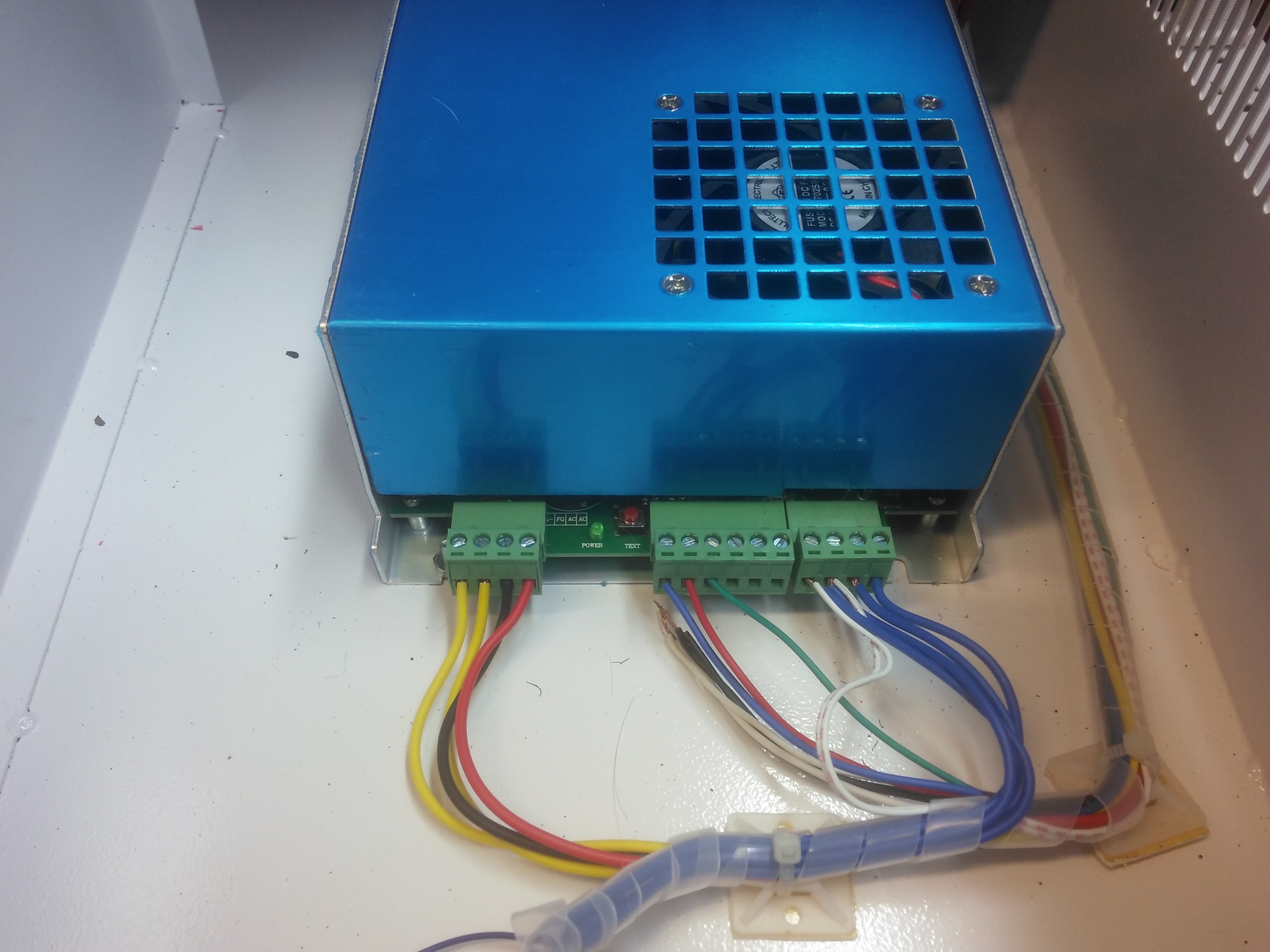 Hello. I am in need of assistance. I recently purchased the k40 laser engraver from eBay. When I got the machine the power supply was bad. I got a replacement from the seller. My problem is the power supply is not the same and there were no wiring diagram. I rewired it based on the positions of the wires on the original power supply. I now have power to the power supply and the power switch and led strip lights work. Nothing else works. If I push the test button on the mother board on the power supply the laser fires. Can anyone help me with my problem?