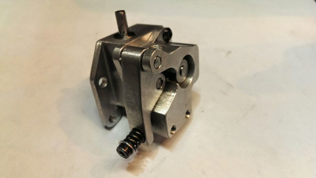 Some of you may remember when I posted here my design of watercooled extruder. Well in the end I didn’t like the design and designed new one. I gave up with the double pinch wheel system also. It is still watercooled There is also PTFE tubing that I didn’t want in earlier build (and either in this build, but its really hard to drill 2mm hole to stainless steel)