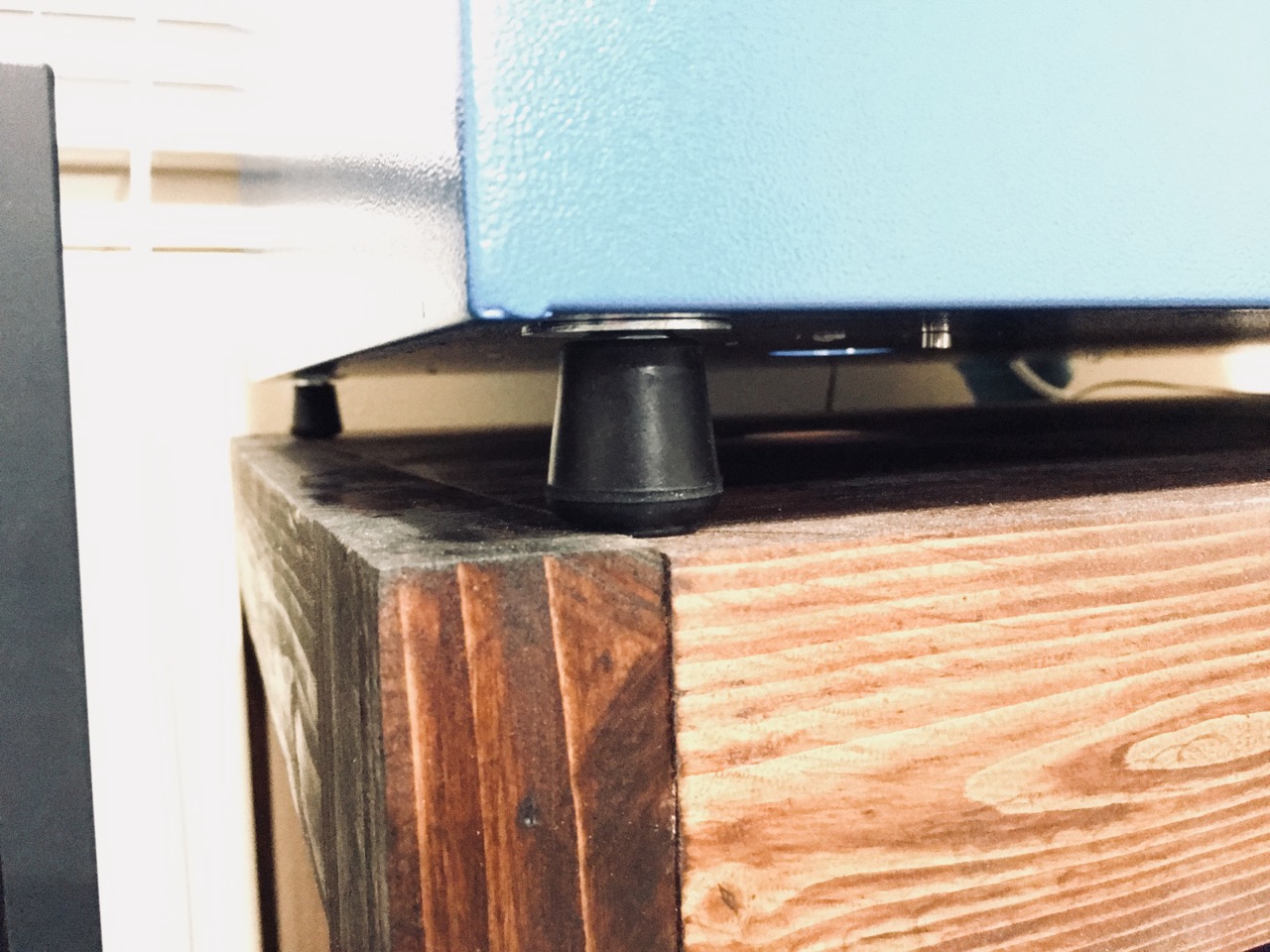 3/8x1 inch bolts, 8 nuts, 4 washers and 5/8" leg ends from Ace Hardware.