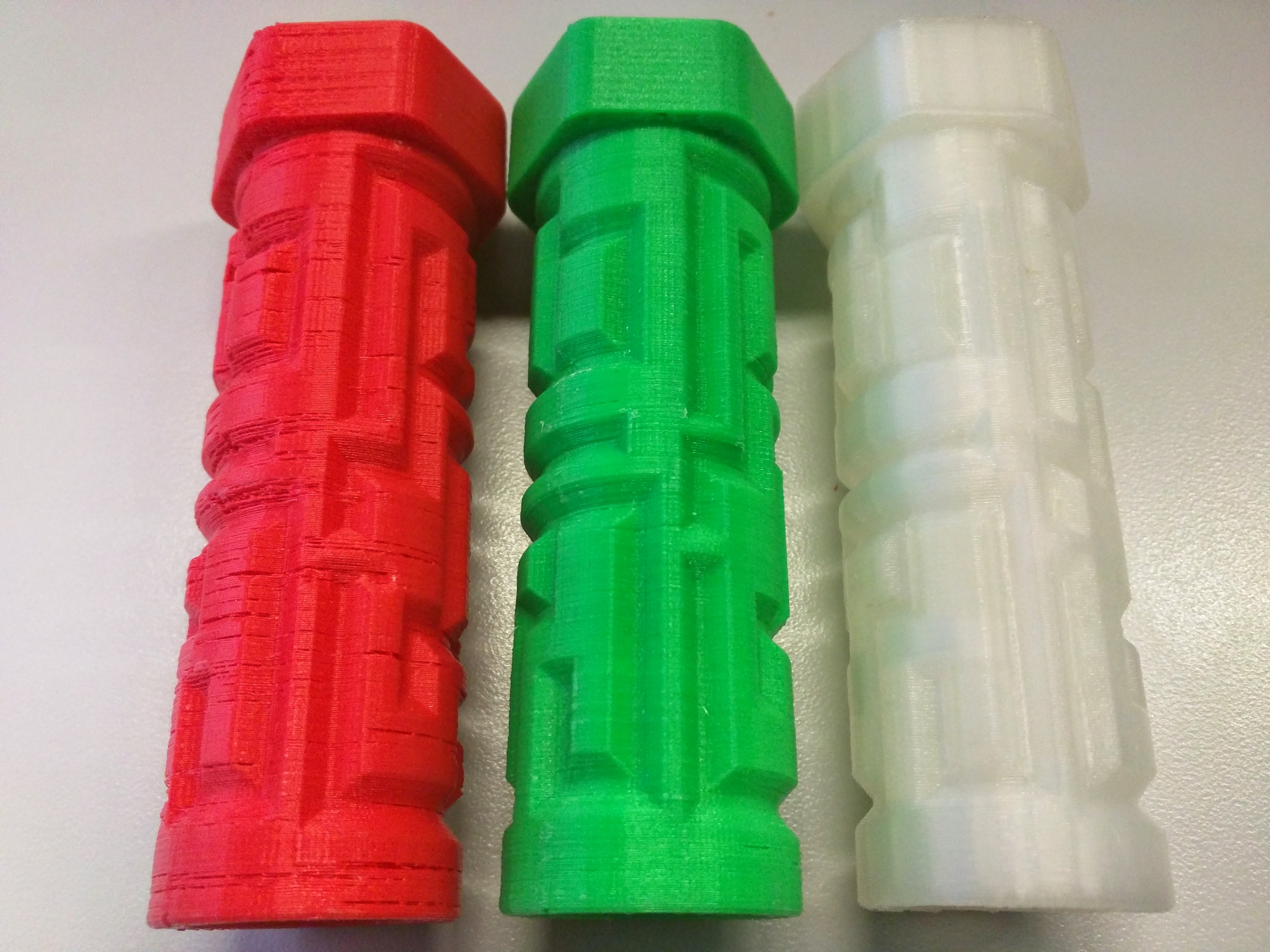 Red: A handful of prints later on the very same extruder on a Makerbot 5th generation.