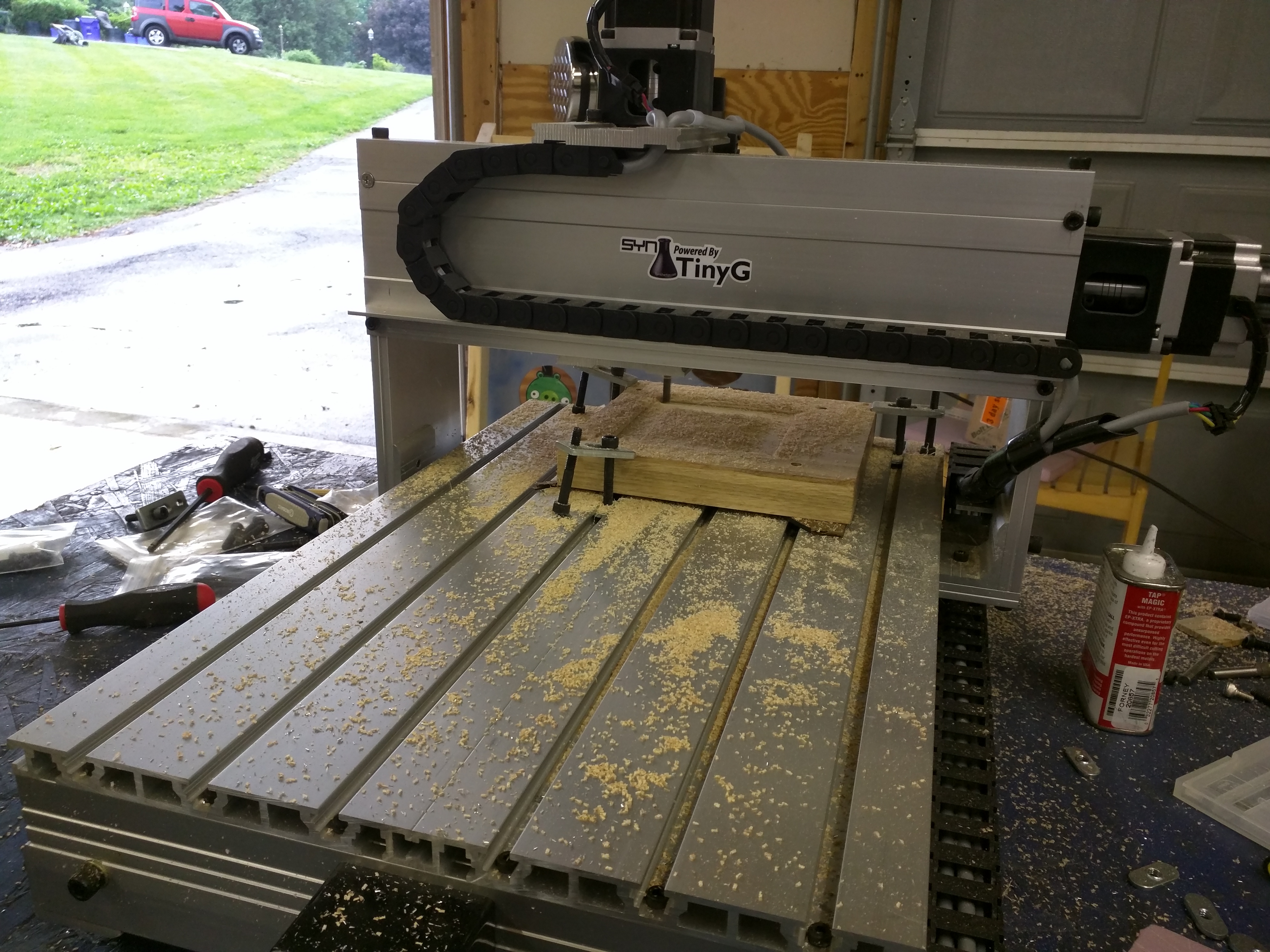 Riley, What kits is that? Does each Motor draw 2 amps or less? I haven’t decided if I’ll go with an OX/Skapeoko or one of the 3040’s on ebay with Ball Screws and put in a TinyG. The machine in this post looks very sturdy!