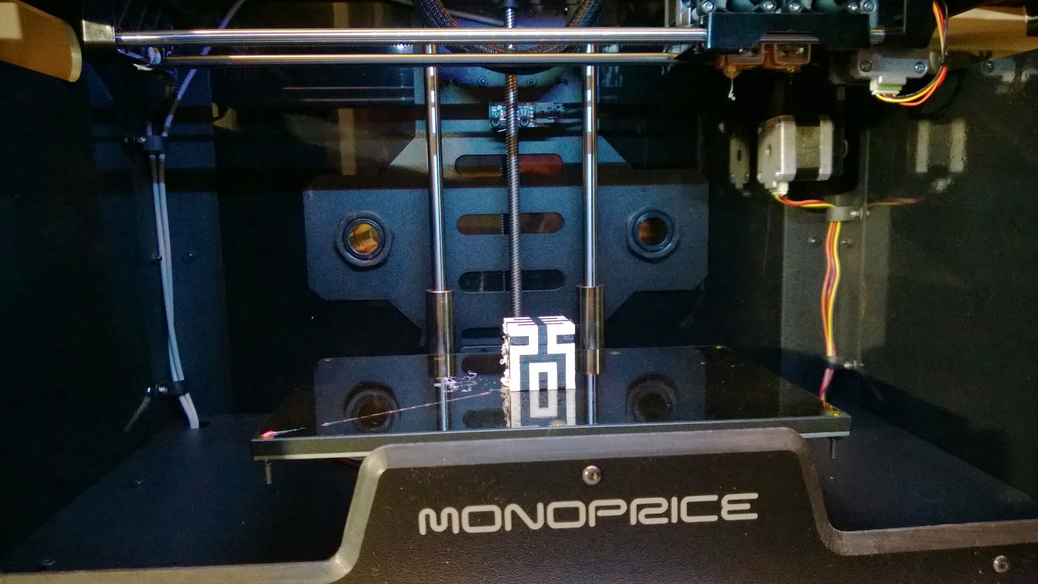 Here is my first print using the MonoPrice Dual Extrusion 3D Printer. It has a lot of stray hairs and wierdness to it so I am wondering what things to look for to help clean it up.