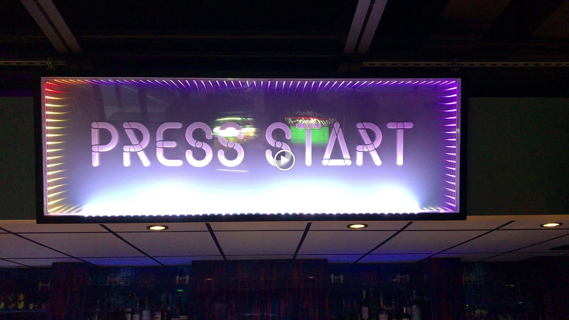 The sheet with the logo is edge light from the bottom, that is the bright glow in the bottom at the start of the video