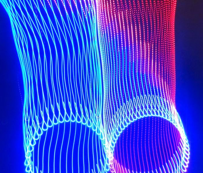 On the left is two hoops; the hoop on the right is changing from blue to red as the lens swings vertically. You can see the changing periods of the PWM as the intensity changes (looking closely).