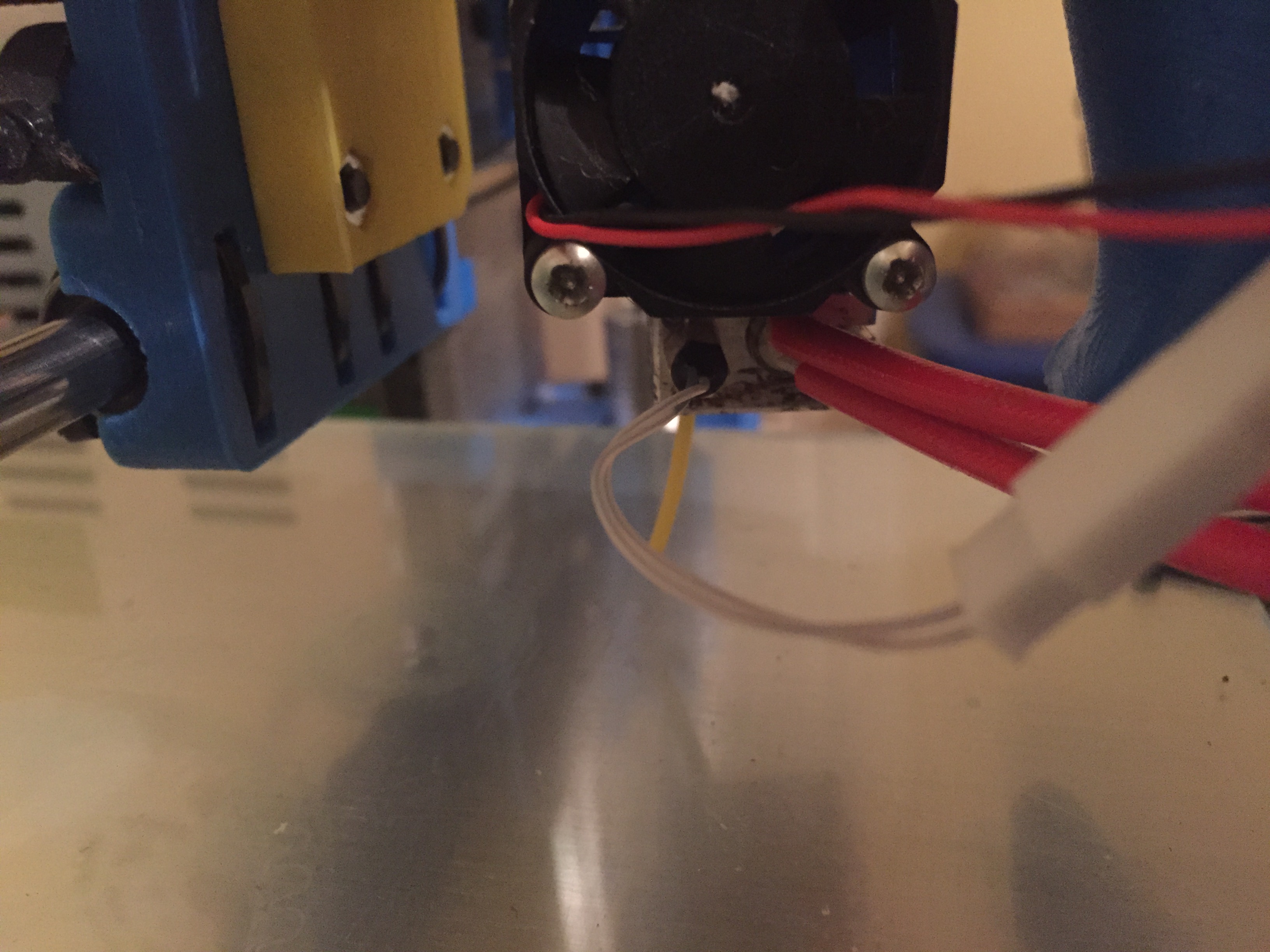 Here’s the thermistor screwed into the 3mm hole on the e3d block.