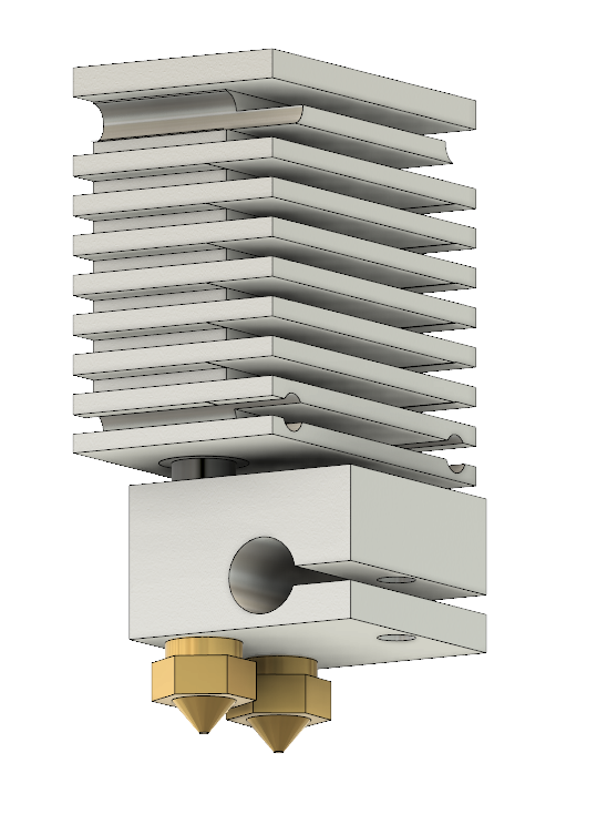 My question is, what usage case makes two nozzles in one hot block superior to separate hot blocks? Leveling difficulty is about the same, and the magnitude of XY nozzle offsets don’t really matter. Two hot blocks lets you print different materials temps, which is really important for soluble support (the main reason to do dualstrusion in the first place in my opinion).