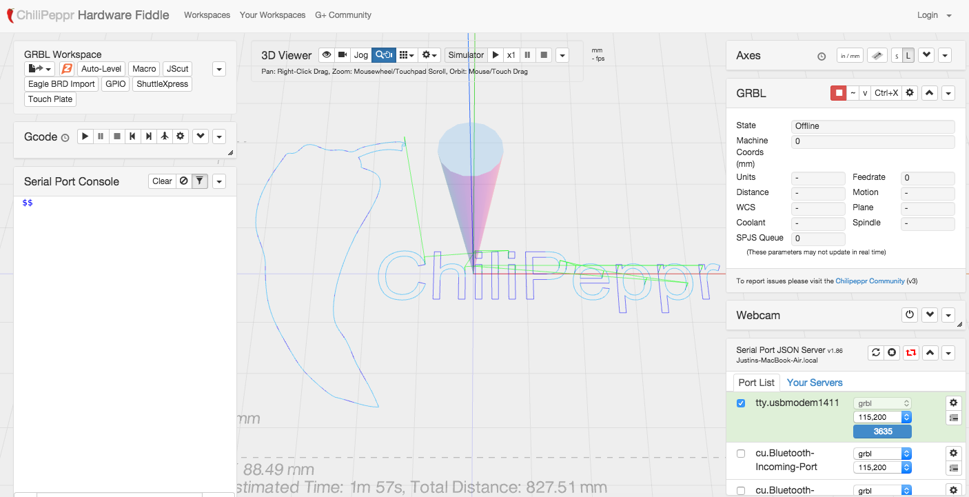 Hey all I have the Synthetos GRBL Shield and im trying to use it with ChiliPepper currently. I got my Json server going and what not but im just not sure where to go from here to get it going. Any help at all would be more than appreciated!!