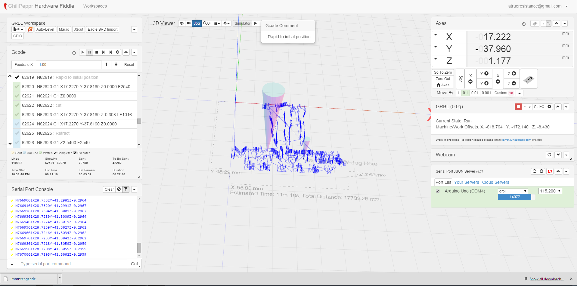 It seems odd that you have 100,000 lines for a 1 hour job and for a job that’s so small at 50mm x 56mm. I’m not sure why the estimator is so off. Can you send me the file? jlauer12 at gmail.com