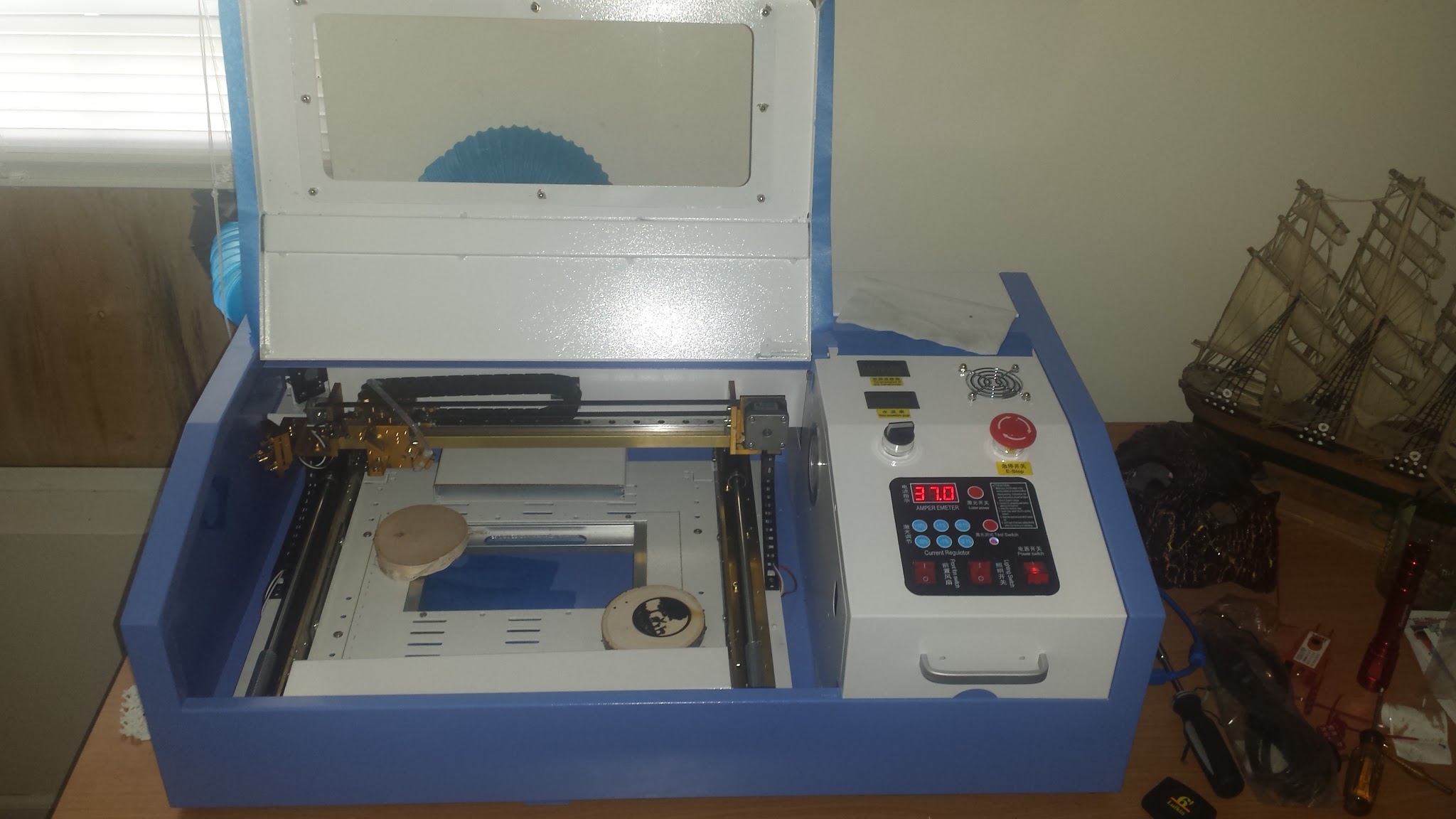 mine is same machine… if we keep 1 inch thick wood…laser beam goes out of focus… thin letters will not looks good… need add a height adjustment mechamism
