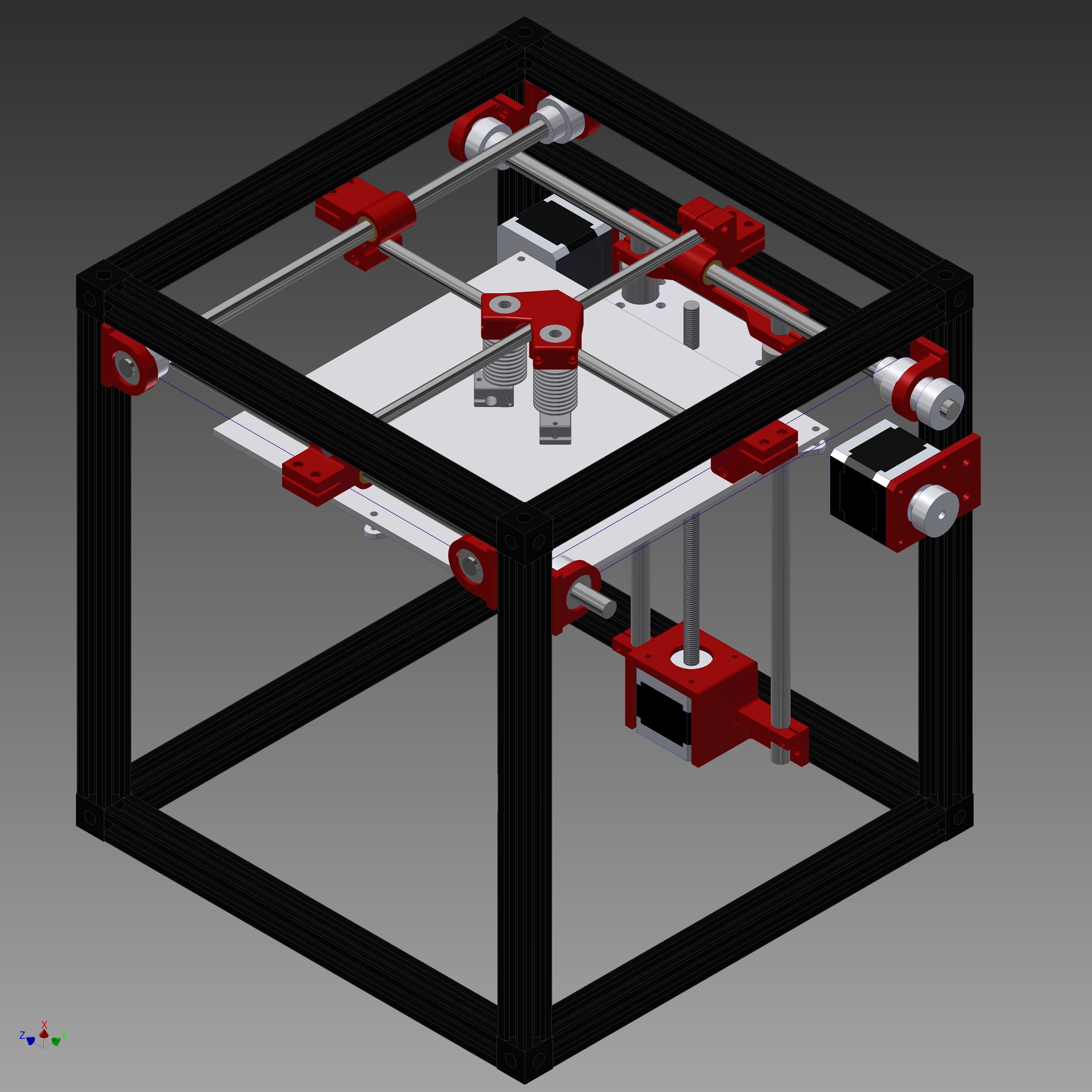 I’m still ironing out a few details but I should be ready to start ordering parts and building this soon. This whole printer will fit in a roughly 12.5" cube with a 200mm x 200mm x 180mm print volume. The plan is to get a dual extruder system working eventually (as shown in this picture) but I’ll be starting with a single extruder. I’ll be posting some updates as I make my next steps in this project.