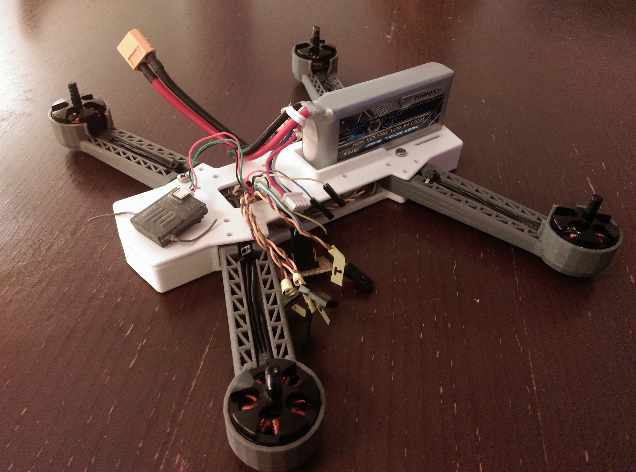 Hey folks, thought I’d share my fully printed drone. Started as a printed clone of the 250 ZMR, but has since become a pretty unique design after a ton of modifications. The arms come straight from Thingiverse for now though.