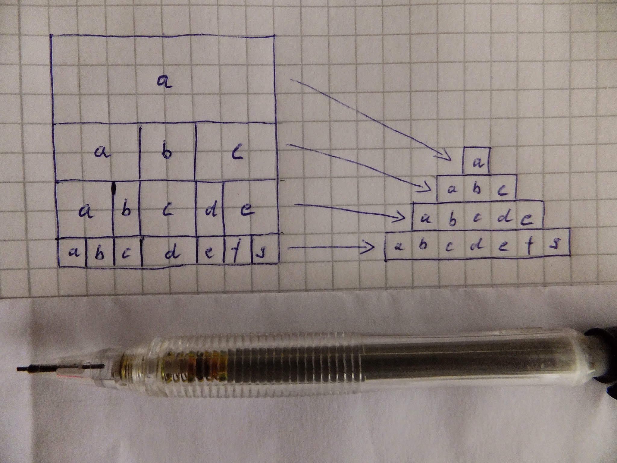When you zoom in on the vanishing point, it becomes clear that at some point, all the data is trying to be crammed into just a single LED pixel. There’s no point generating huge amounts of data if you can’t display it, so I arbitrarily made my cutoff to be where a full row of tilted data can only fit in one pixel. That happens at a height in the data matrix of h_r = w_0 * log(w_0) / log(2). Plugging in 40 for w_0, we get that h_r = 212. So, if you have a rectangular matrix of noise data that is 212 rows a 40 columns, you can completely fill the triangle. I happened to make my rectangle 240 x 40 because that was the next even divisor of 40 (so that the matrix is a group of 6 rectangles instead of 5.32 rectangles).