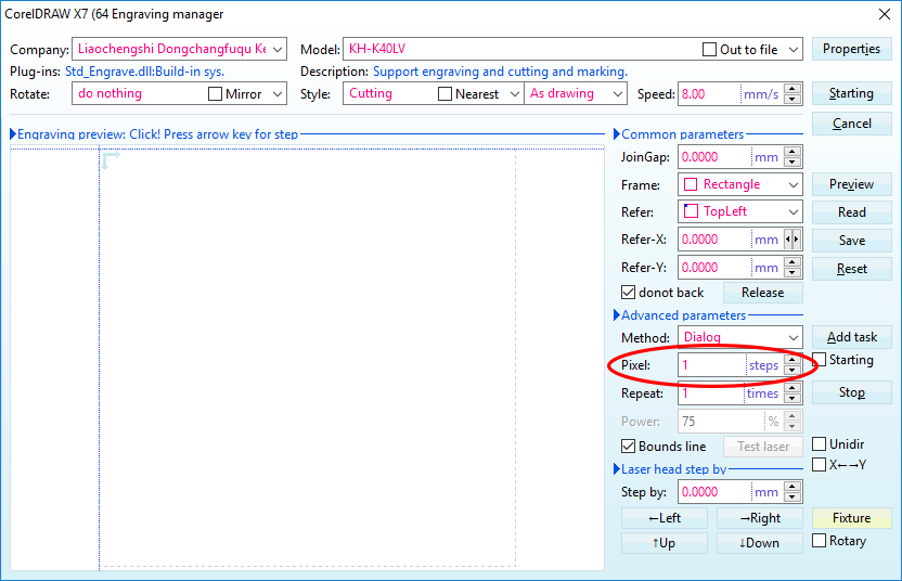 If you change this to 2 (0.002 in) the engraving should take about half the time because the laser will cross the design half as many times.