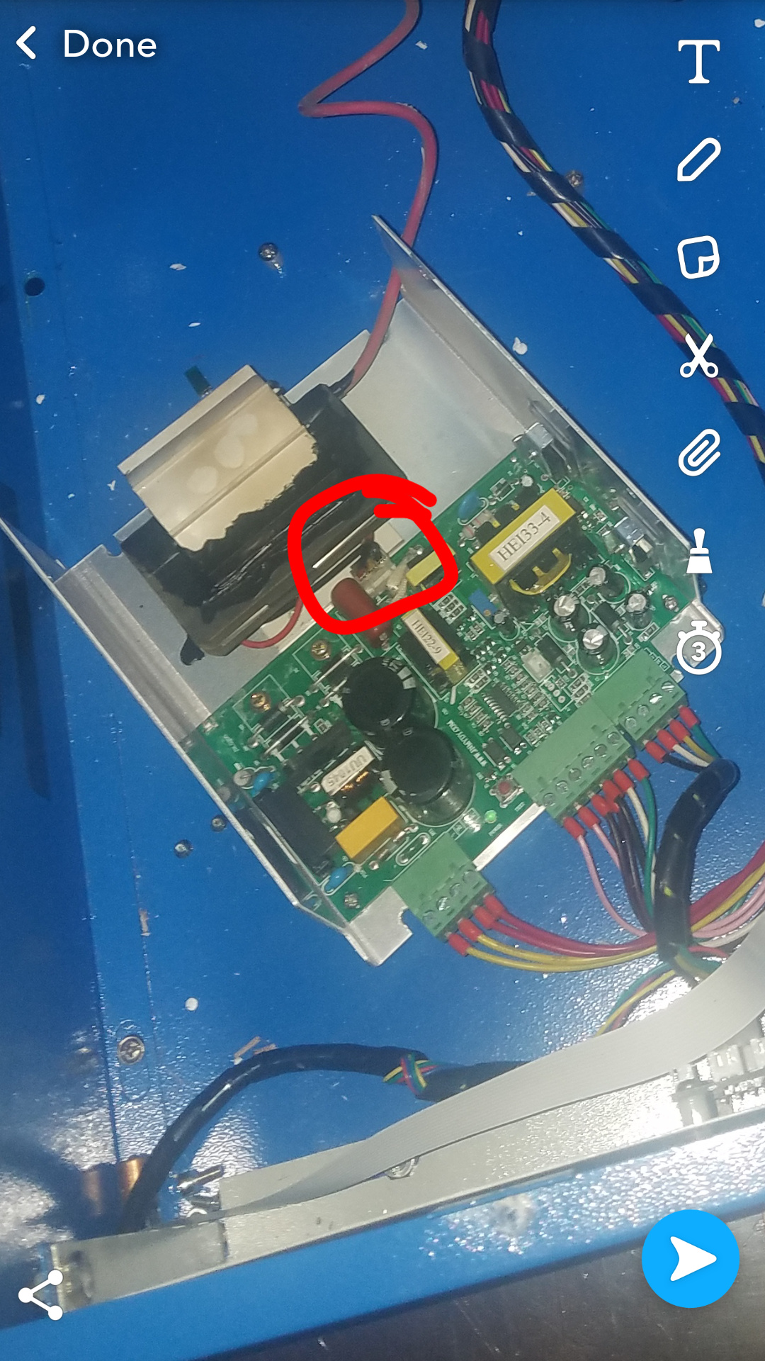 Hey guys! My laser was working fine and still does work technically (it burns and engraves) But I started hearing sparking/arcing going off inside of the Power Supply Box. I took off the top (after I disconnected it and took a picture of where the burn marks.