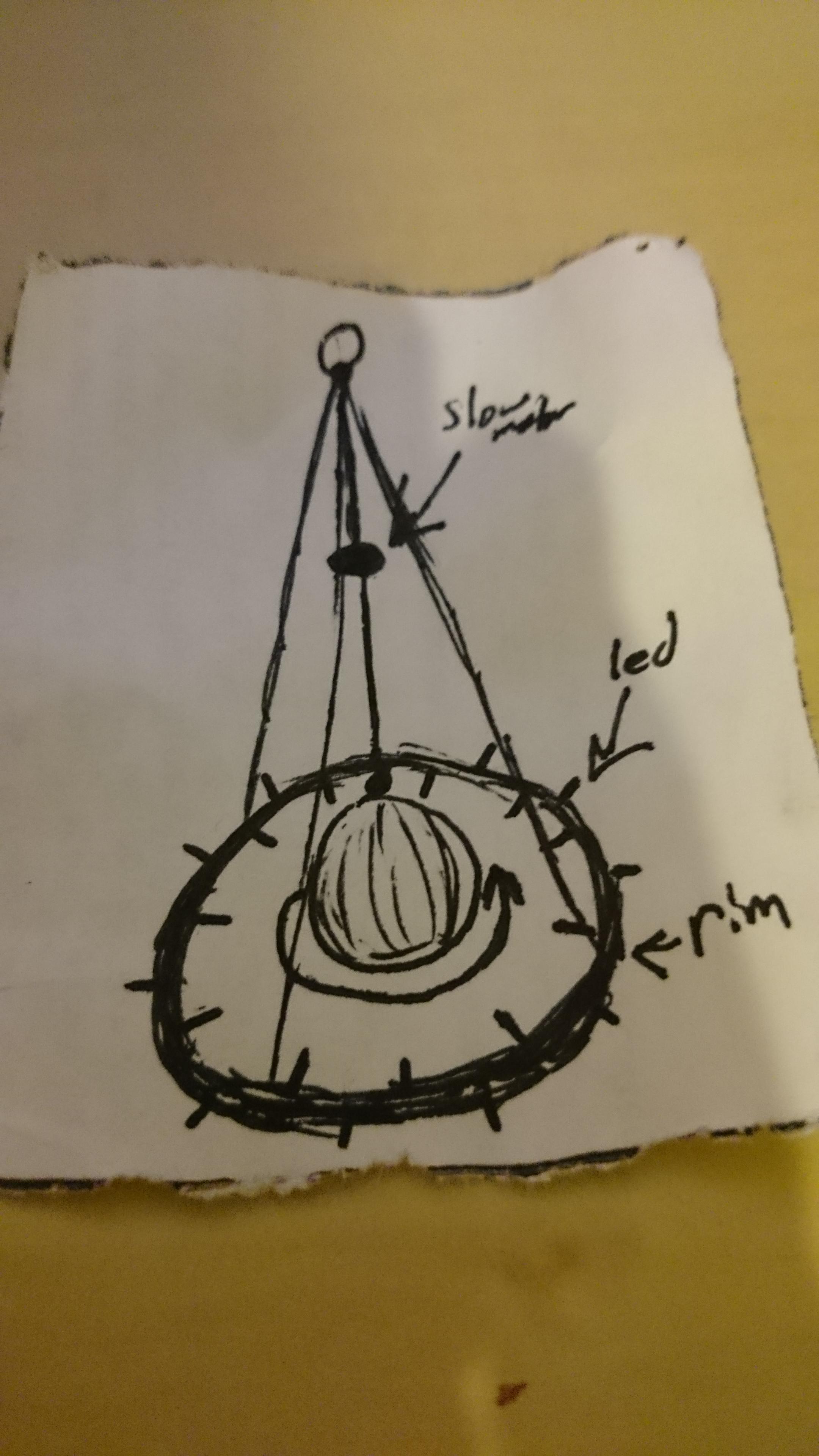 I have the mirrored ball and bike rim. The rim has a circumference of about 68 inches, and its either a 32 or 36 hole (haven’t counted yet). I also have an arduino Uno.