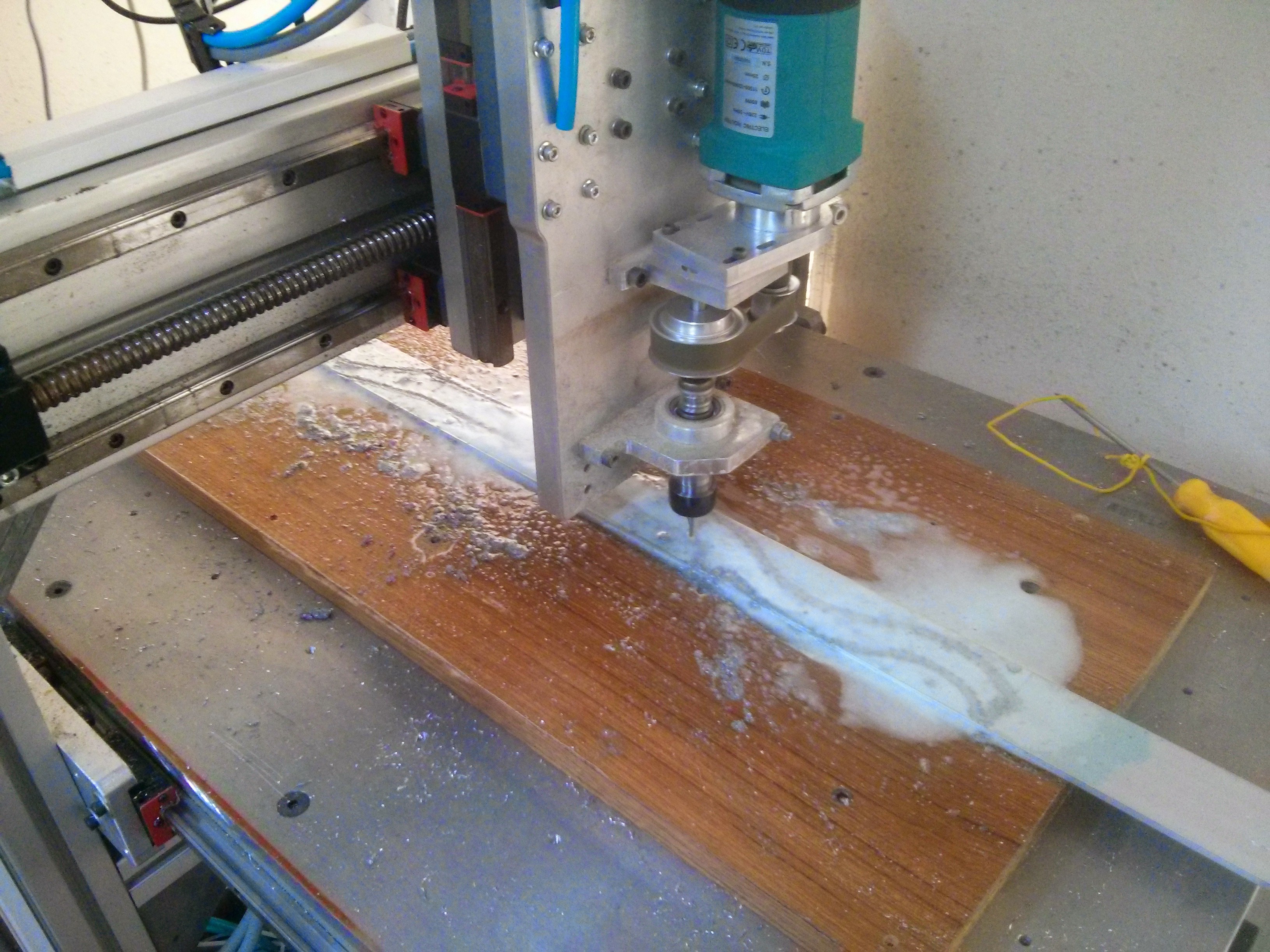 I got lots of progress from my last post. You already know I had some vibration problems but It is gone with lots of aligning. I bolted 15mm 6082 aluminium on my table. It made huge difference on rigidity.
