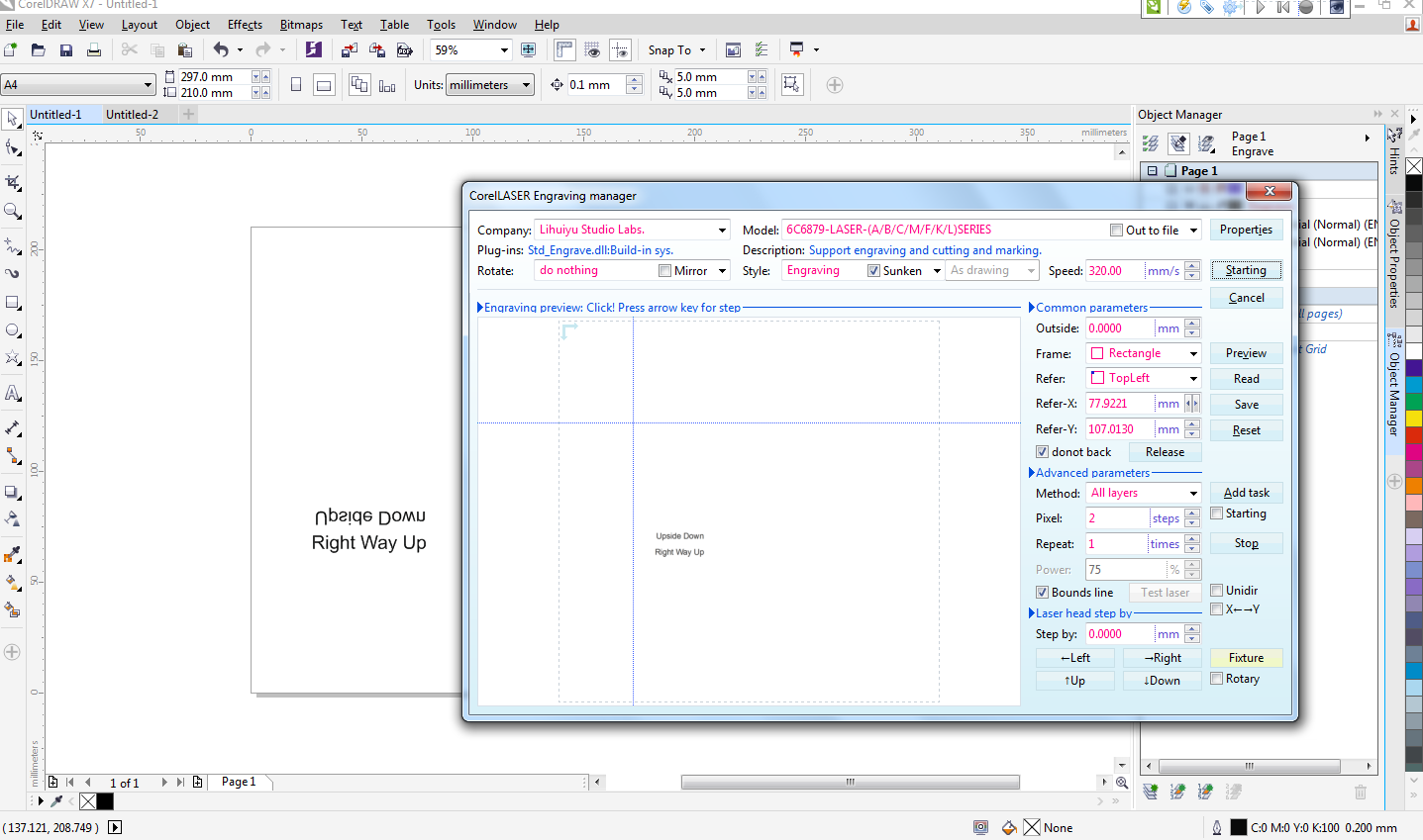 Anyone know why this is happening. When i mirror a textbox upside down it engraves the correct way up?!? I am using CorelLASER x7. Anyone any idea?