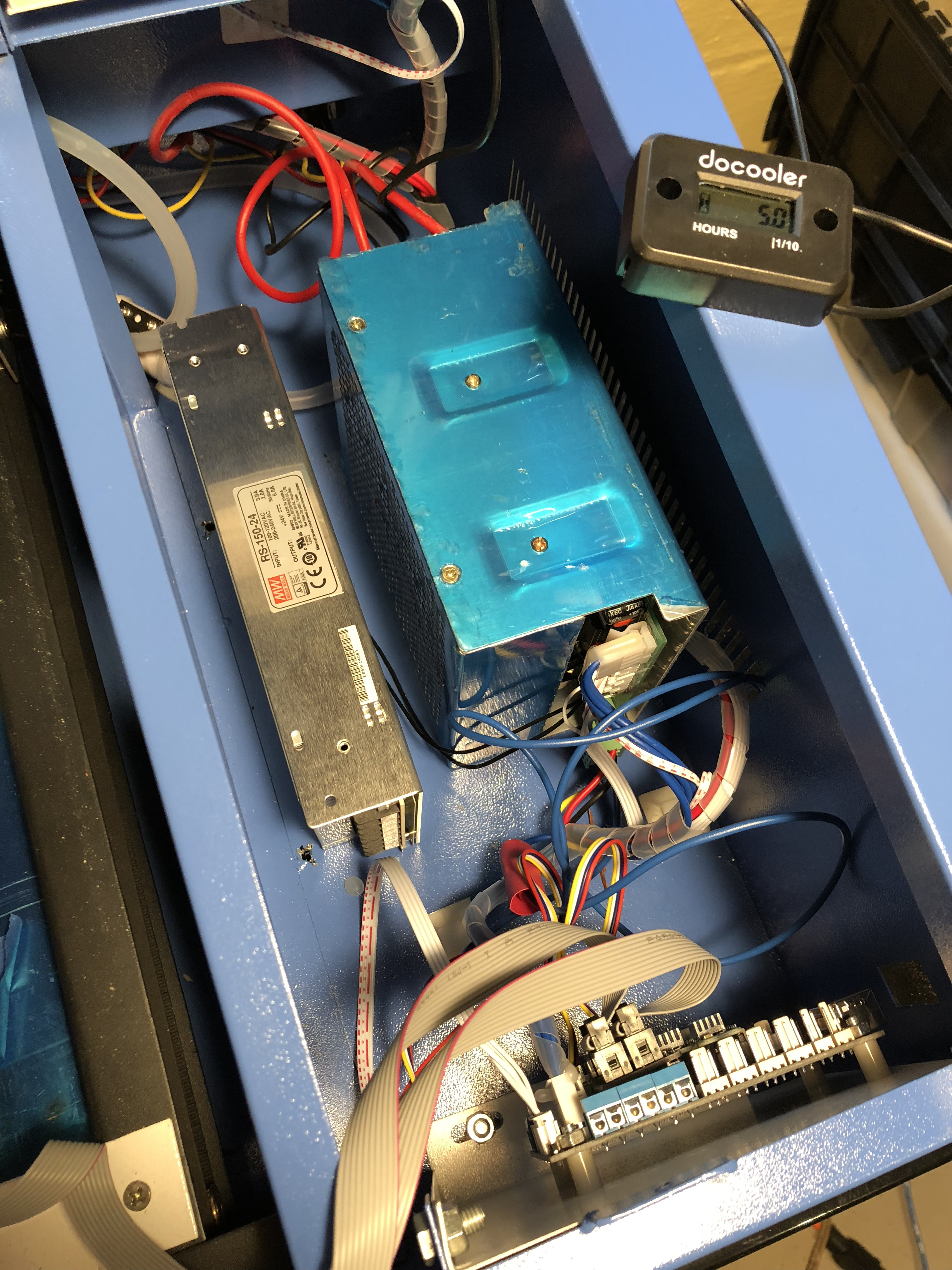 Been working through the standard upgrades. Just finished installing the Cohesion3D controller, but I’m having issue with the display garbling when powered up from the LPSU. So next up is a dedicated 24v power supply to provide cleaner power.