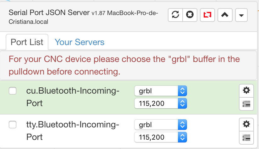 @jlauer I found that the chip is chinese and not a “real” arduino. Anyway, I could find the driver and got the usb server working. It is now recognized by CP. The problem now is that it says “Offline” on Grbl state. I chose other numbers differente from “115 200” and nothing happens. Do you know why it might be Offline? missing/deleted image from Google+