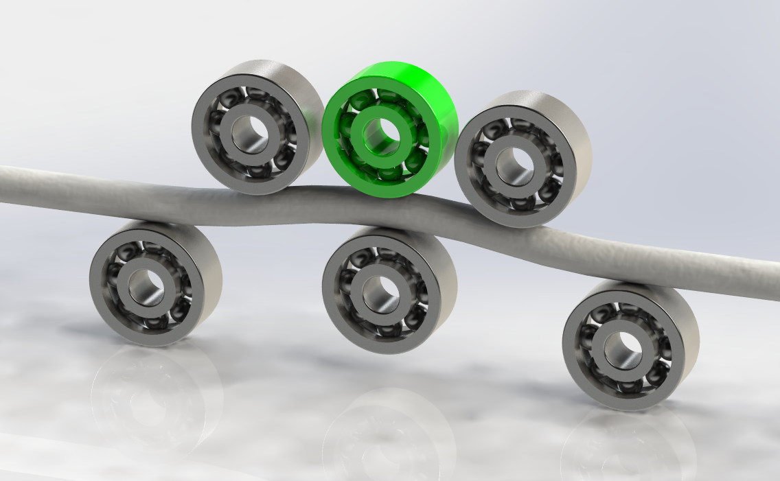 @Dale_Dunn The concept i’m sketching out right now has the filament guided before and after the rollers and forces it against the static roller, but i still need to determine how tightly i need to (and can) bend the filament. Quick sketch of the idea here, with the green bearing being the one that is used for measuring and the others static: