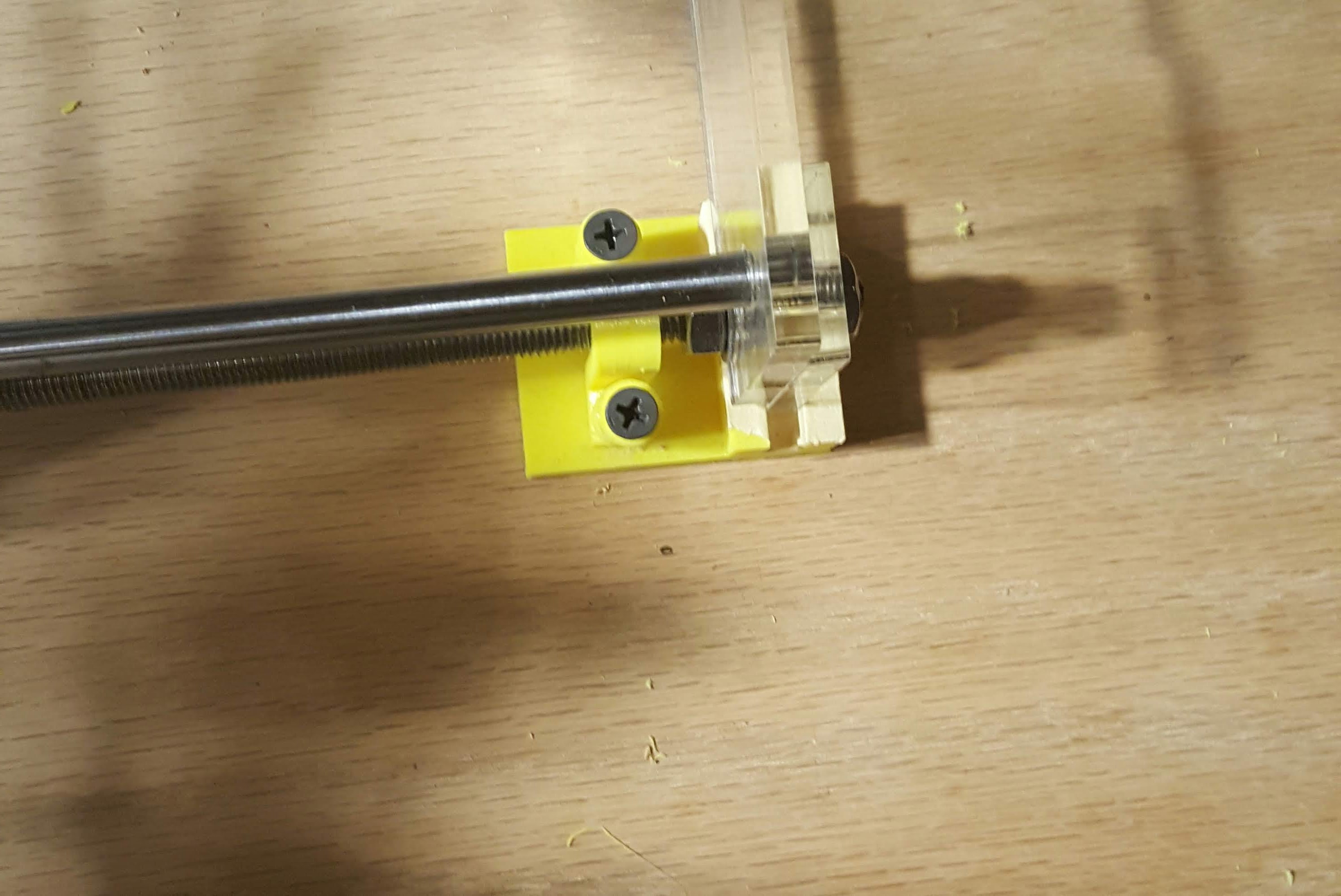 Future mods… main power switch and fuse, power meter, control board cooling fan. Existing mods are lttle feet to hold the corners square, lead screw braces top and bottom…all the yellow parts are printed mods. I need to print the right top brace for lead screw then a center brace and it should be pretty rigid. My top braces have channels for the frame to hold it square and hold the verticle shaft and leadscews solid. Using mods from thingiverse plus adding my own.