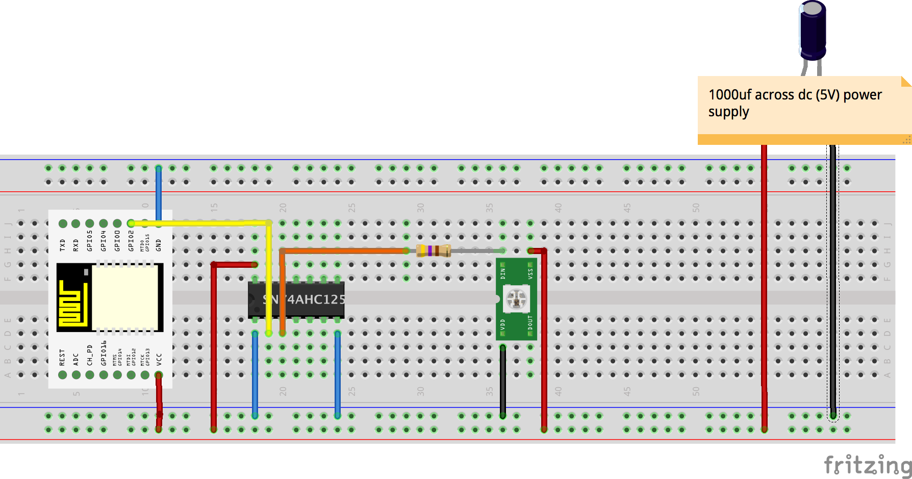 Hi, I would love some guidance. I’m setting out to build a small scrolling ticker. My plan is to connect 8x1m strips to my ESP8266 board. I have experience with the ESP8266 just not with LED strips. From my research using FastLED + this library https://github.com/AaronLiddiment/LEDText seems like the way to go. I did some sketching of the basic wiring and wanted to get a second opinion before I continue.
