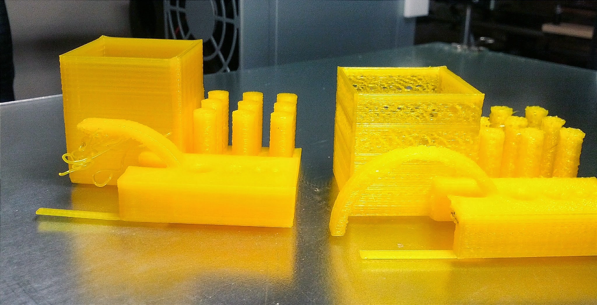 Hi, If I could pick your brains for a moment, I 'm having trouble printing on my latest printer… (ingentis / Eustathios / rigidbot). On the photo, i’ve done a torture test. On the left, my old trusty Prusa I2 /w direct drive filament. On the right, my clone using bowden and airtripper’s extruder. both have the same setting to print out. 80mm/s with 205C temp. they both have a J-head (the prusa has a brass ending while the clone has a aluminium one). both tests were made witht the same spool… Has you can see, the clonde is having trouble printing.