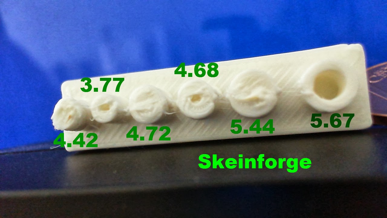 I tried to slice it with Skeinforge and Slic3r and both two give wrong measures, anyone with its own artifacts as you can see. The objects were printed in PLA, so even with strong cooling, that are not perfect, and the slicers create very different sized based on the cylinder type: with an hole or without. May be in ABS it would be better.