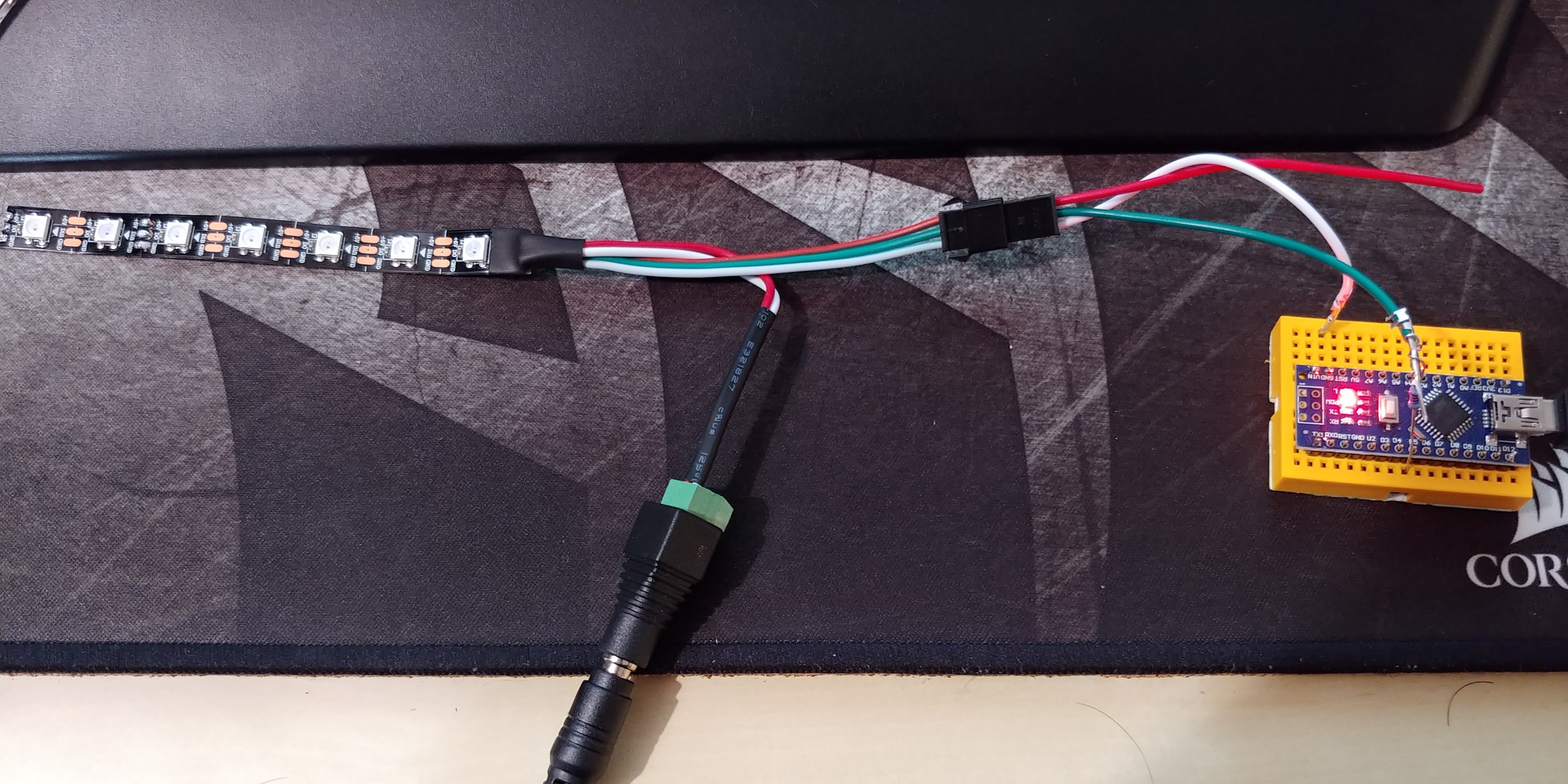 - Connect the 5V supply to the LED’s and to the 5V pin on the Nano.