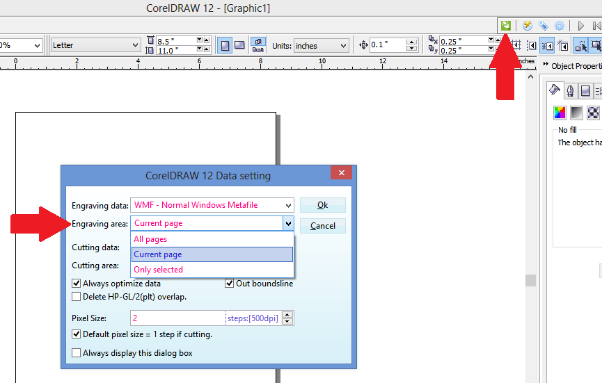 Now on my brothers machine if he tries the same thing , no matter if he selects one , both or even neither of the circle and square , on the cuttiung page both items show up and both items cut.
