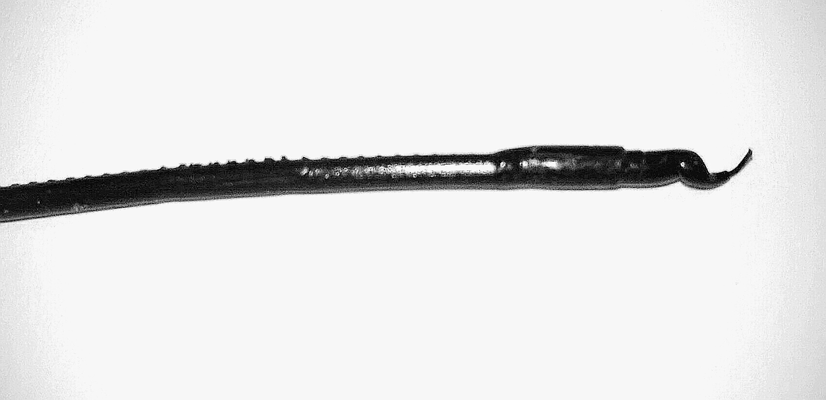 looks like a PTFE liner has swollen and the filament is expanding in it at the junction between the PTFE liner and the throat/melt zone. the step at the end is the metal to PTFE junction and the larger area and the taper indicate how wide and how far up the PTFE has been expanded from heat creep (lack of sufficient cooling on the heatsink of the hotend). Replacing the liner should fix it. I had filament look exactly like this in Monoprice i3 V2.1 and replacing the liner fixed it for PLA. Eventually got a Micro Swiss all metal hotend, I recommend that over replacing liners.