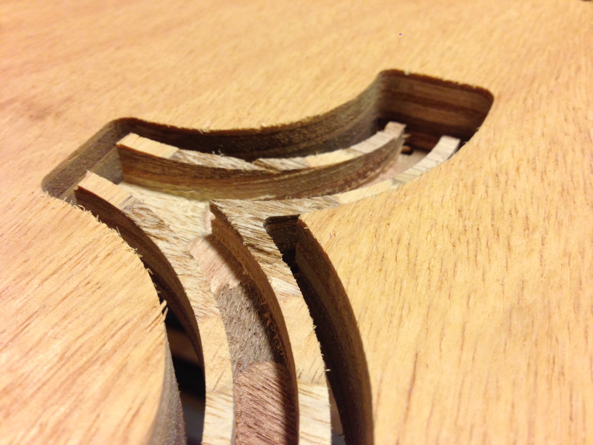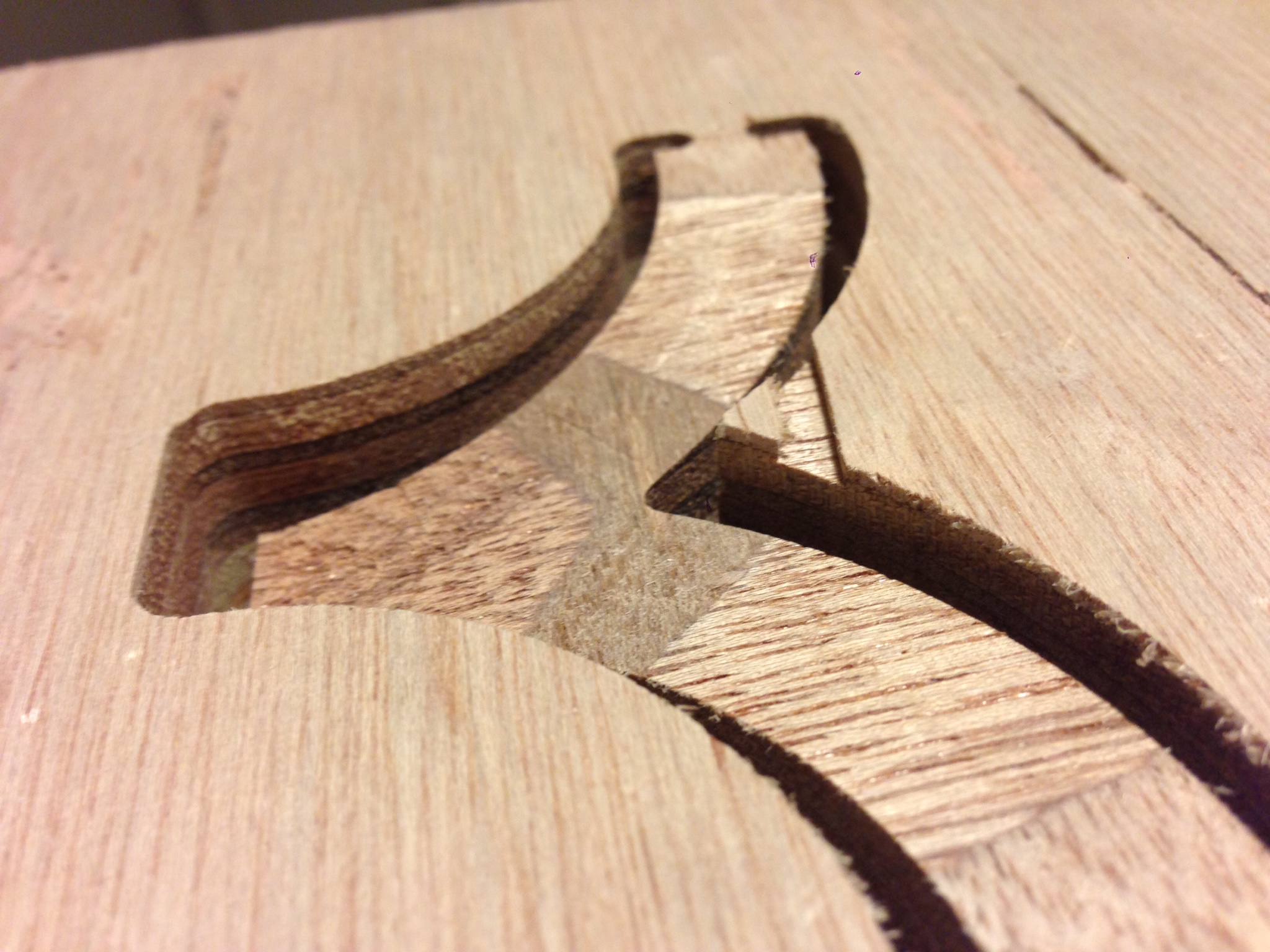 The R7 cut this really nicely using a 4mm flat end compression but. I have since made this out of MDF using the same settings 18,000 rpm @ 3000 mm/min. and it turned out great as well.