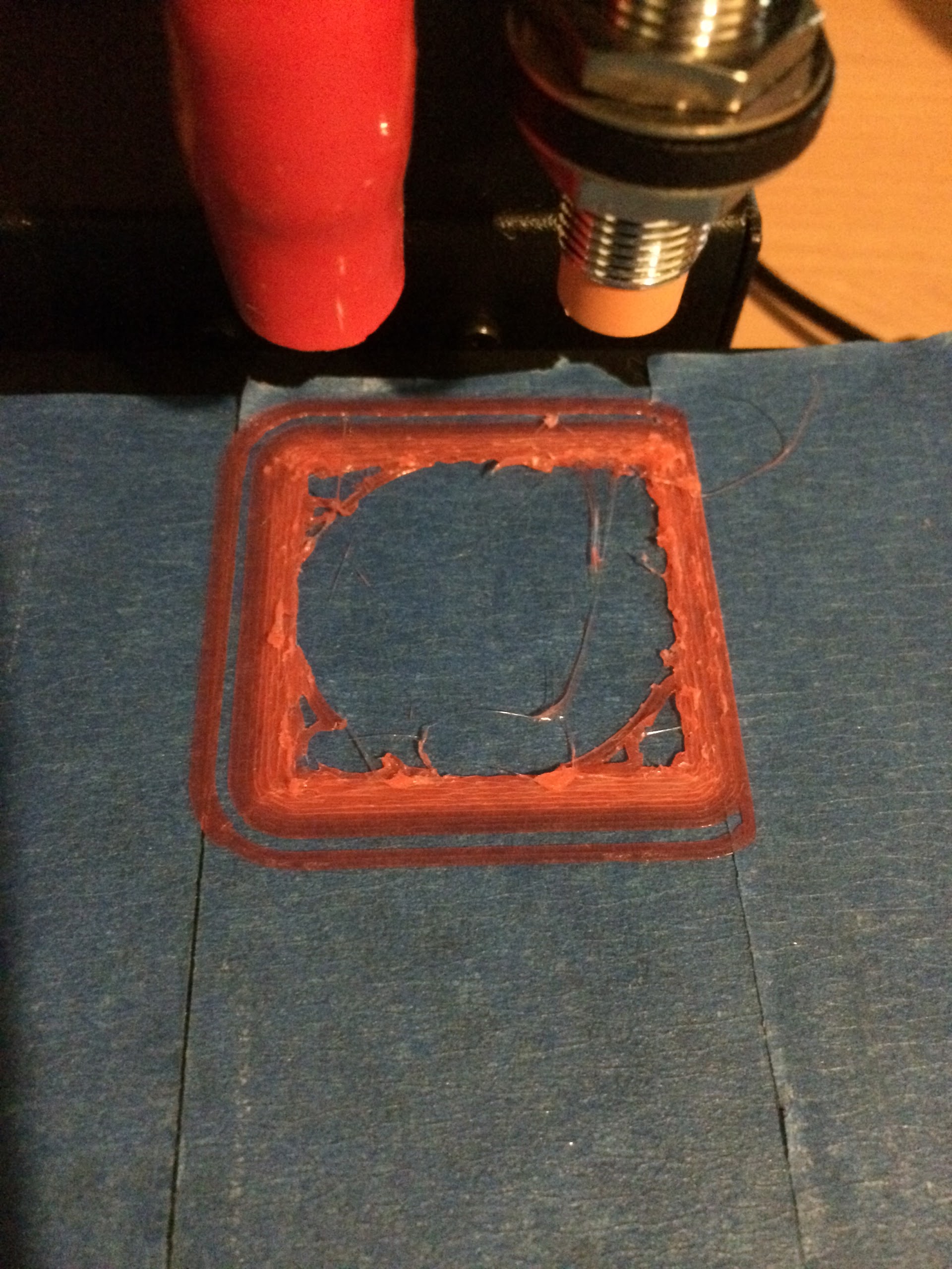 Hi there!im trying the printbot metal simple. Im in the calibration of z axe. I get this what do you think? Temp 200 i have set the z-1.2 . Shall i go lower? Shall i change temp? Flow? I have tried all but always the same results. In the first perimeters it is ok but after that it goes like that