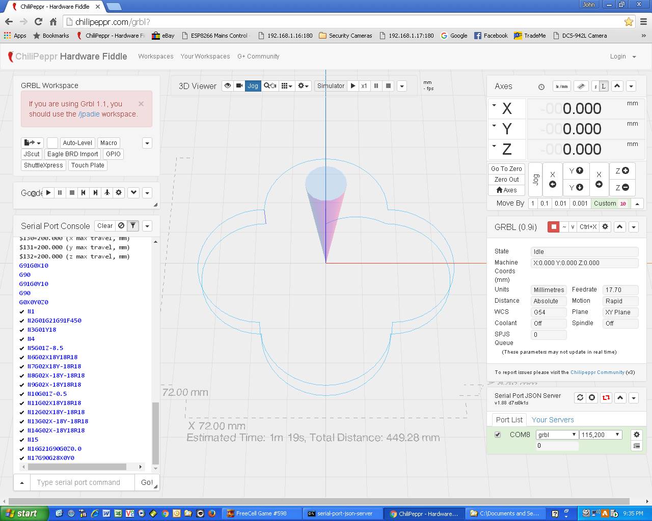 I had a few weeks away from using my stepper setup and when I fired it up again there were lots of things that wouldn’t work correctly. I was using the ‘/grbl?’ environment (I hadn’t tried the newer ‘/jpadie’ section yet, although I did see John’s announcement re it’s release).