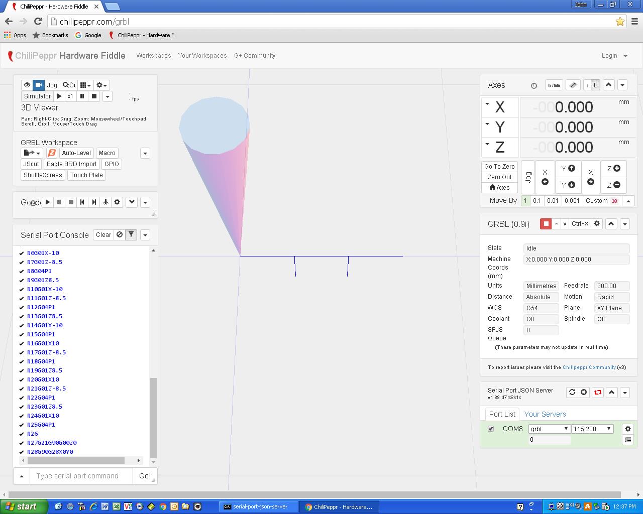 Now, when I login to Google then enter http://chilipeppr.com/grbl in chrome it’s anybody’s guess as to what I get on my screen. Sometime I pick-up someone else’s work and sometime I get what I was last working on – totally random.