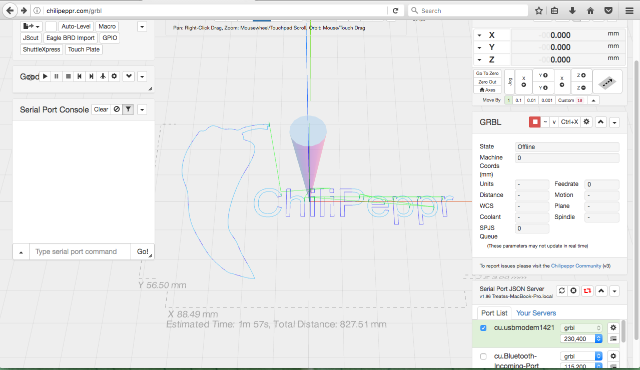 Hi there my question is why I have an offline status? I flashed my arduino with the code provided by zyltech where I bought my kit. serial port is up and running, and my browser is firefox. On a side note I have managed to connect in the past just long enough to jog the steppers so that at least hints that if it can happen once it can happen again although I couldnt tell you what I did other than open the workspace on the browser and connect to the serial port. Thanks everybody.