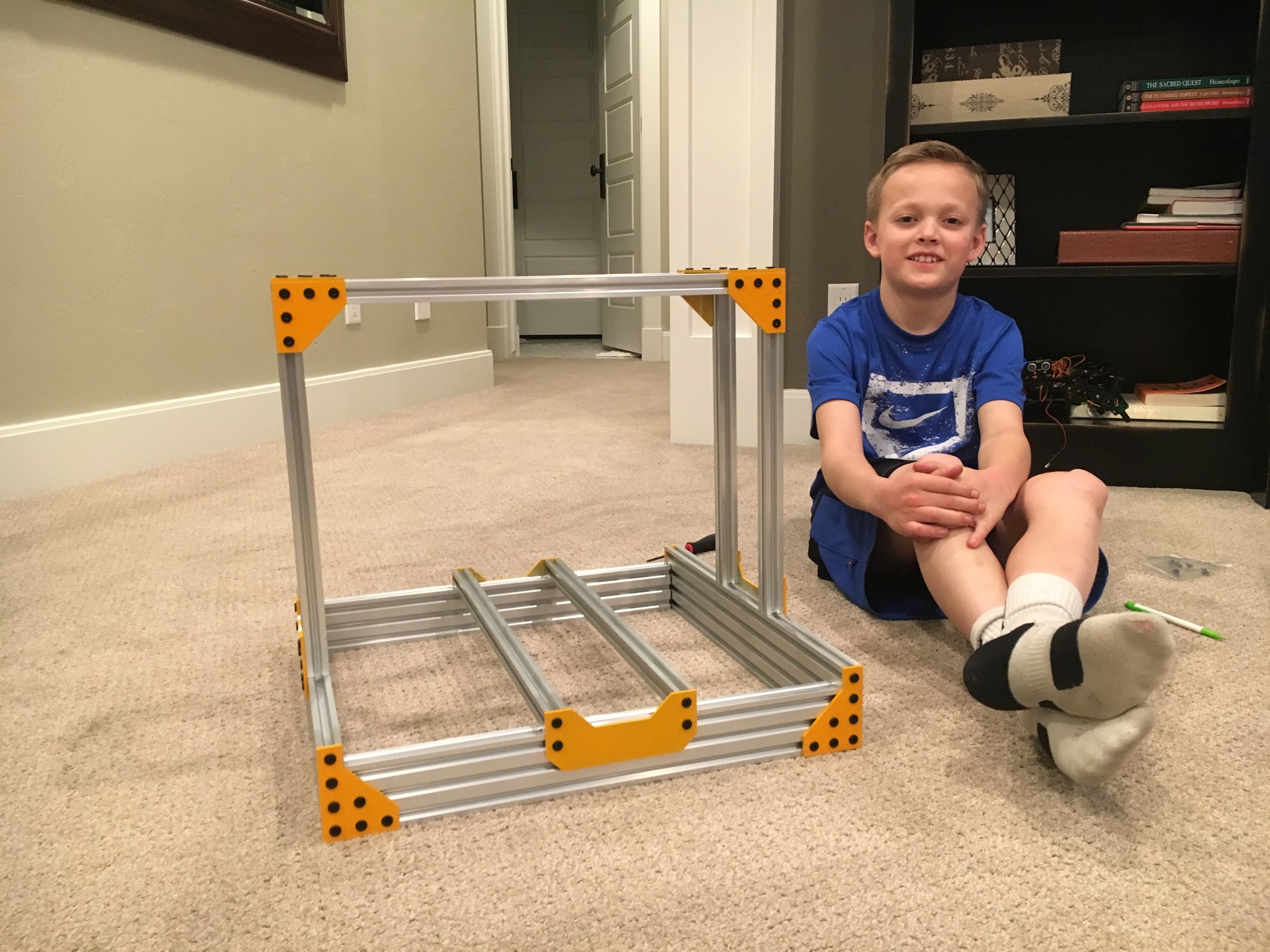 His first 3D printer build, and Day 1 was a resounding success! Kudos to @Alex_Lee on a great design, from the pre-cut and pre-tapped extrusions to the TNuts that can be installed from the surface, my 10 year old had a great time and did all the work save it an extra set of hands to put the gantry on. We’re looking forward to see the “bumble bee” spartan take flight!