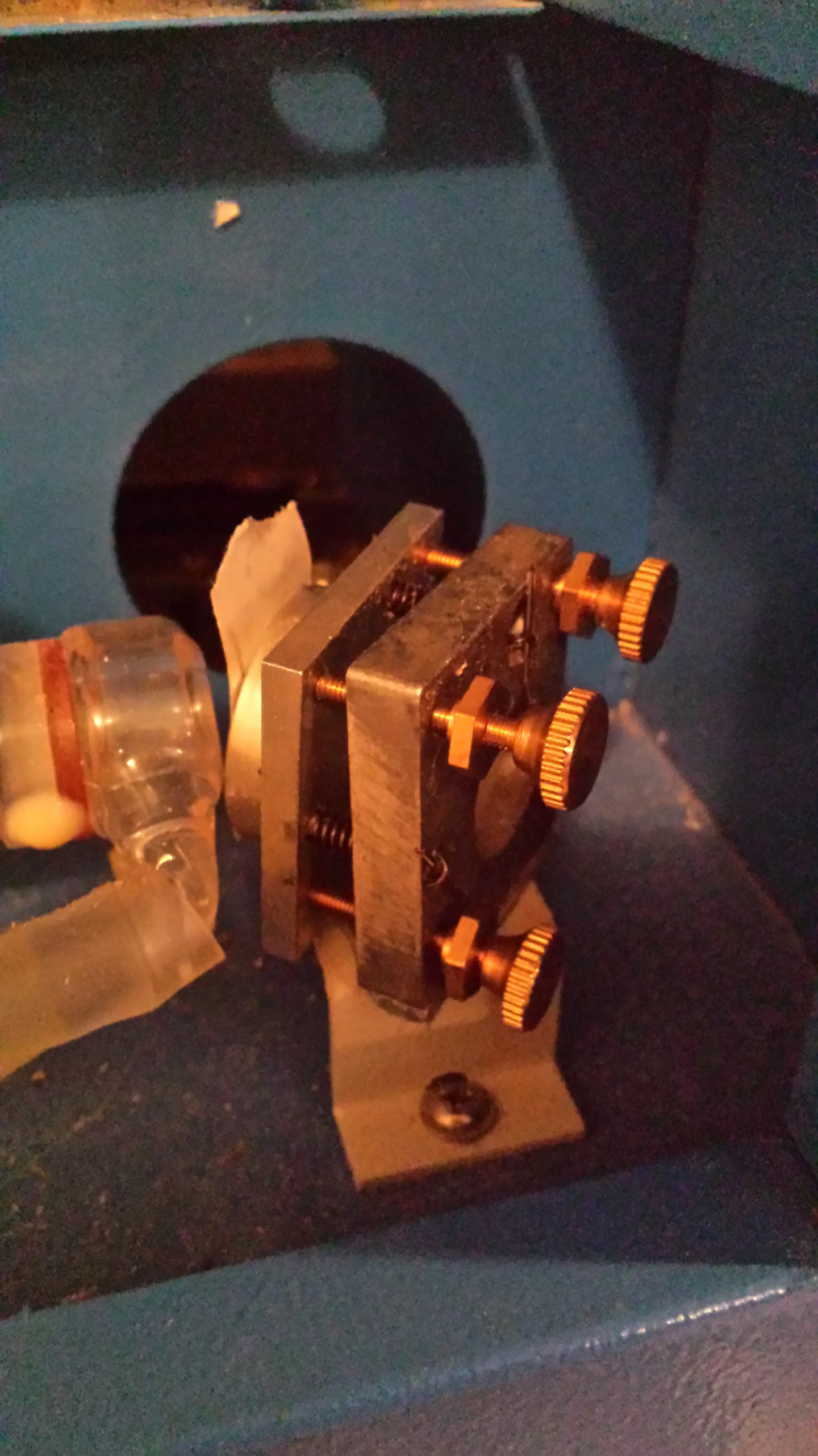 I’ve been working on my laser all weekend and unable to get the beam to the centre of the mirrors the picture is the first mirror and the tube .