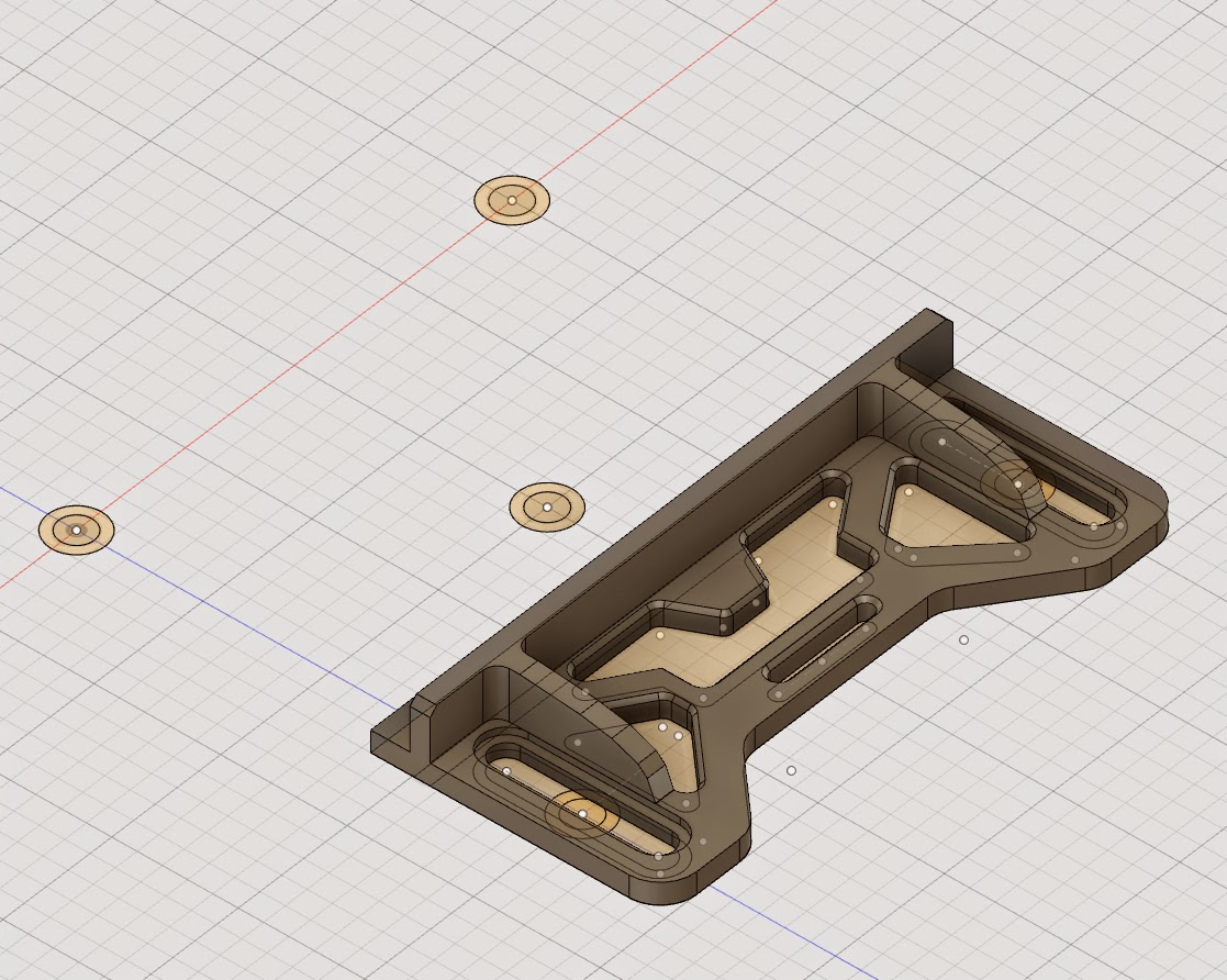 Hold Down brackets. The spacing is 100mm. The Center hole is 50mm. I’ll use that to hold a angle bracket (which I have not designed yet) for round/irregular materials.