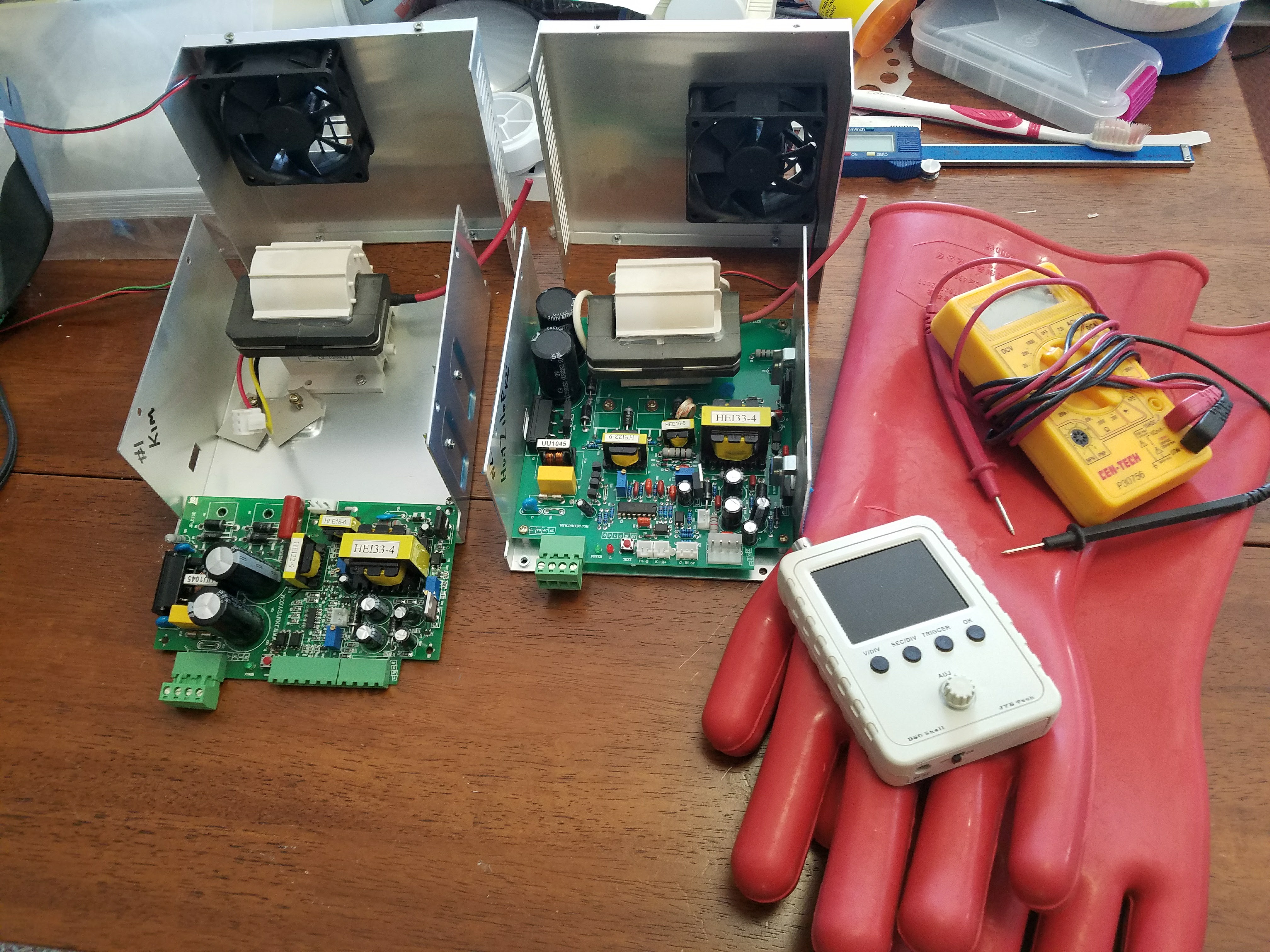 The one on the right is G-W-W style with through hole PCB and soldered in fly-back.