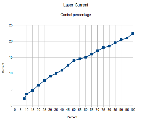 Here’s a decent idea of what a percent power to mA conversion would look like. Most engraving speeds I use fall between 200-500mm/s and between 25-50% power. Set up some small test engraves and experiment with changing speed vs power. Do the same for cutting. I do this each time I use a different material and mark each test with the info and keep for reference.