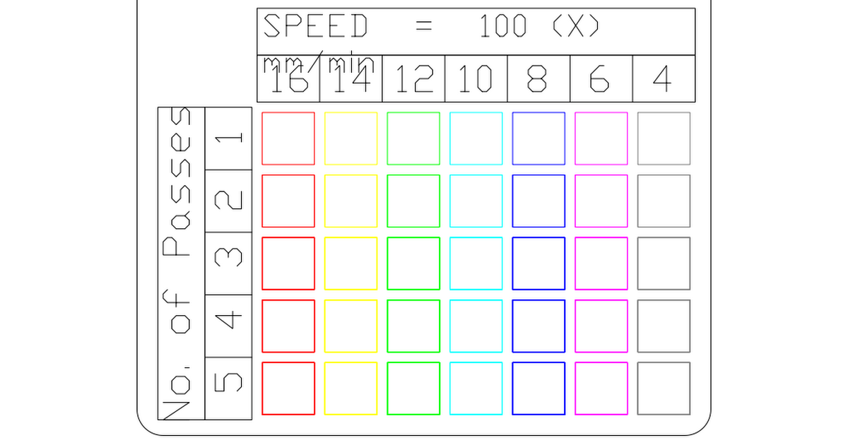 In my lasersaur board I can do lasing by color. So I do from the lowest speed first so that will be on the right side of squares first. I am looking at the fastest with lowest number of cut with the least burn damage I can live with.