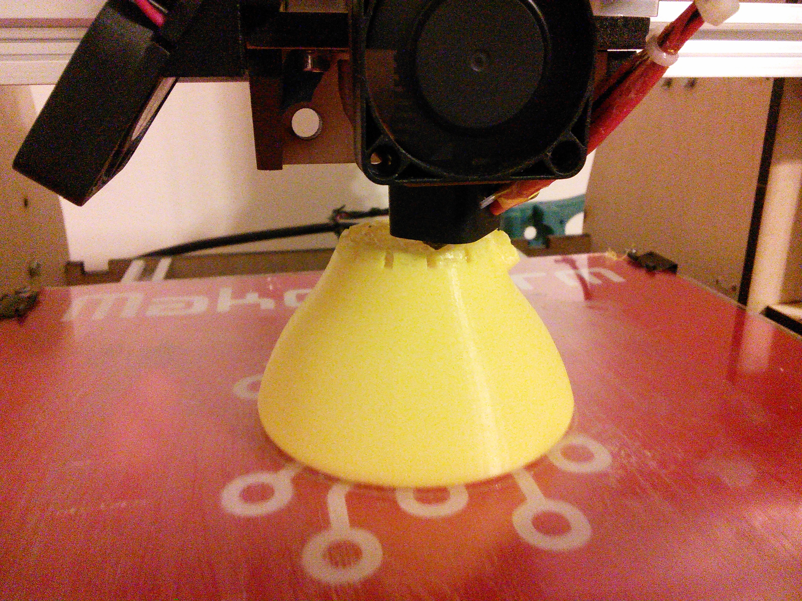 I’ve been keeping my filament spools inside a “rubbermaid” tote container, while not completely air tight, I have some large dessicant packs in there too. I picked up some gallon sized ziplock bags and will seal it up in there with the silica gel bags. Very rarely do I hear a pop from the extrusion. This is PLA I got from MicroCenter. I carefully looked for a bag that looked like it was without holes. This filament is working much better than the black PLA I got with my printer from makerfarm. Using RAMPS and have not connected the machine to a computer yet. I have been printing off the SD card. I ran a manual test of extruder E steps and I am underextruding 3%. Unfortunately it looks like there is no way to commit the changes into the firmware (M500??? I have watched some youtube videos on Marlin firmware settings) without using a PC and something like repetier host.